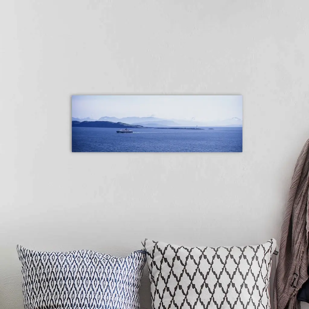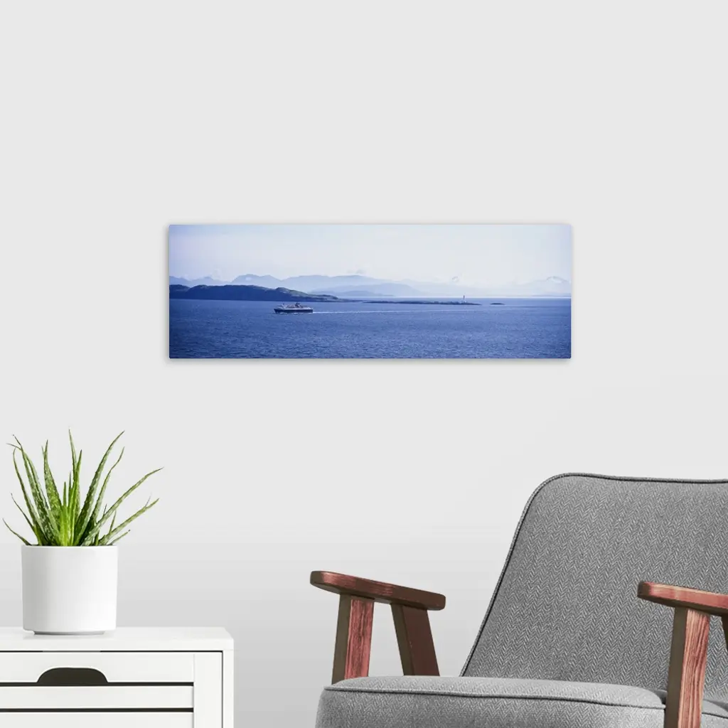 High angle view of a ferry on water, Caledonian MacBrayne, Isle of Mull, Scotland wall art for home and office decor. Discover canvas art prints, photos, mural, big canvas art and framed wall art in GreatBigCanvas.com's varied collections.