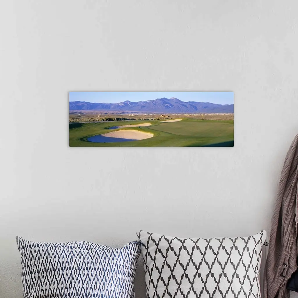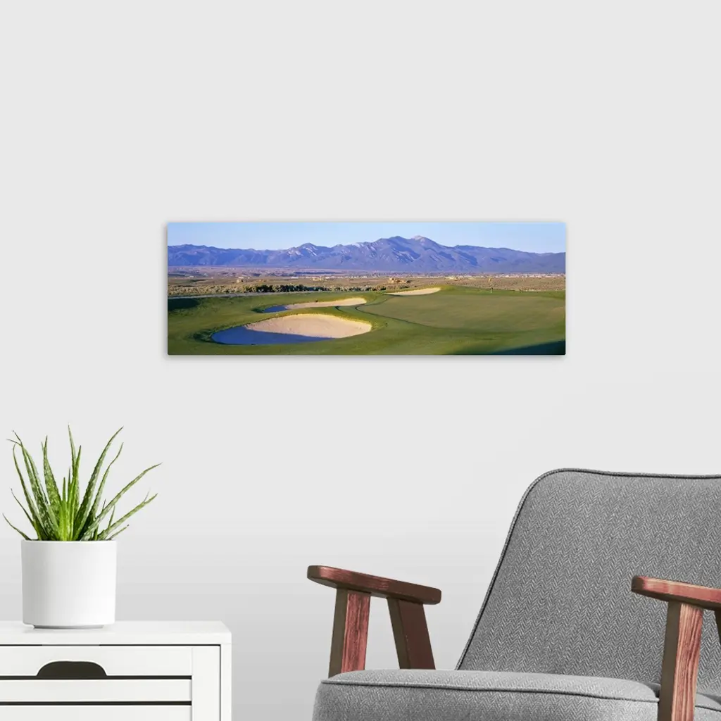 High angle view of a golf course, Taos, New Mexico wall art for home and office decor. Discover canvas art prints, photos, mural, big canvas art and framed wall art in GreatBigCanvas.com's varied collections.