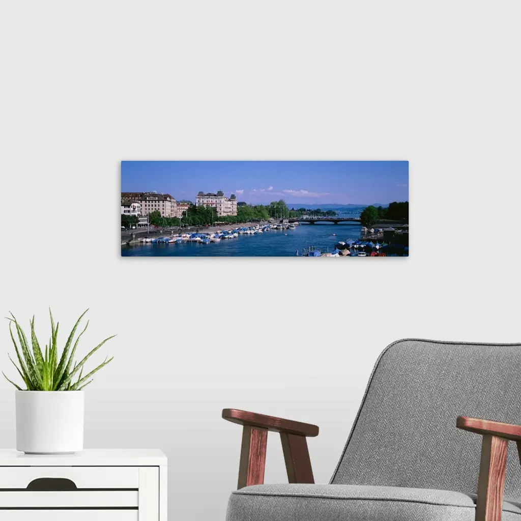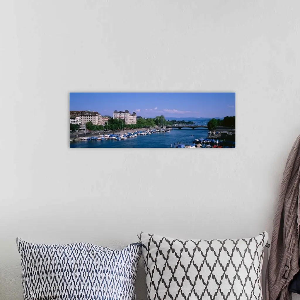 High angle view of a harbor, Zurich, Switzerland wall art for home and office decor. Discover canvas art prints, photos, mural, big canvas art and framed wall art in GreatBigCanvas.com's varied collections.