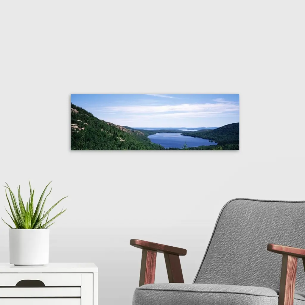 High angle view of a lake, Eagle lake, Maine wall art for home and office decor. Discover canvas art prints, photos, mural, big canvas art and framed wall art in GreatBigCanvas.com's varied collections.