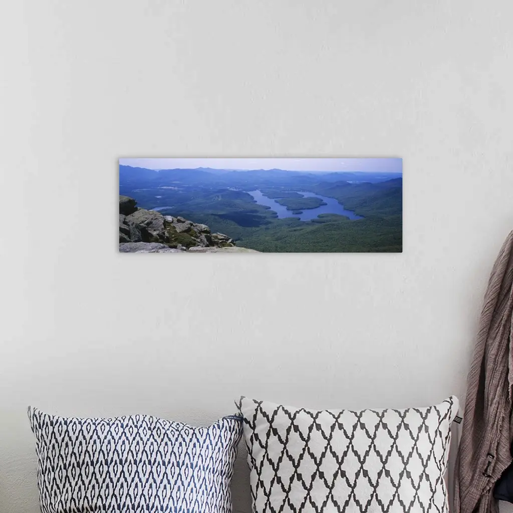 High angle view of a lake, Lake Placid, Adirondack Mountains, New York State wall art for home and office decor. Discover canvas art prints, photos, mural, big canvas art and framed wall art in GreatBigCanvas.com's varied collections.