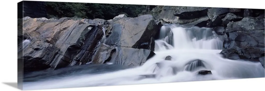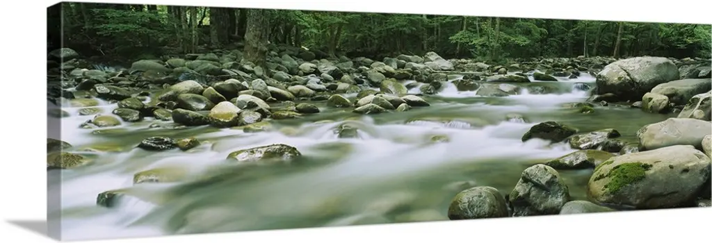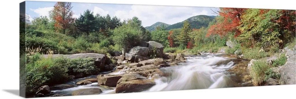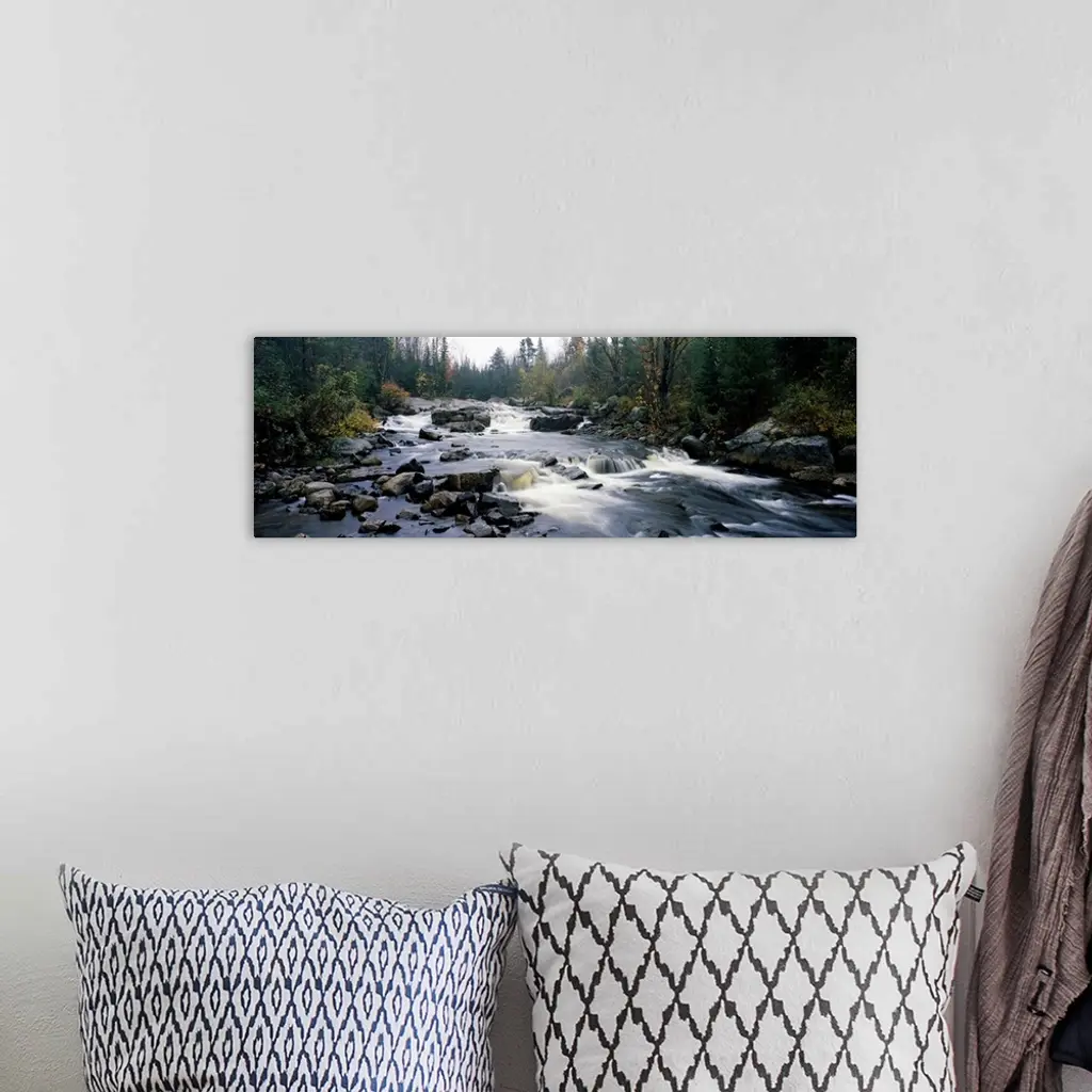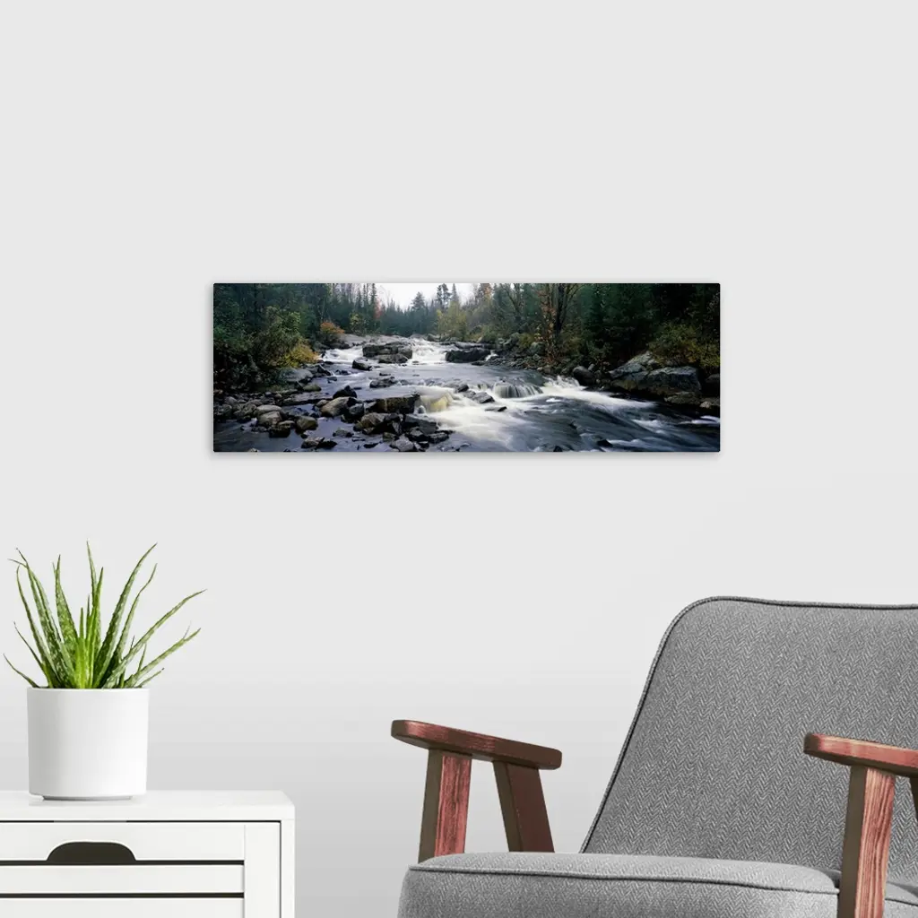High angle view of a river flowing through a forest, Black River, Adirondack Mountains, New York State wall art for home and office decor. Discover canvas art prints, photos, mural, big canvas art and framed wall art in GreatBigCanvas.com's varied collections.