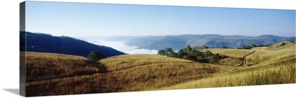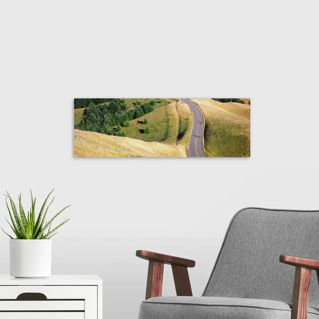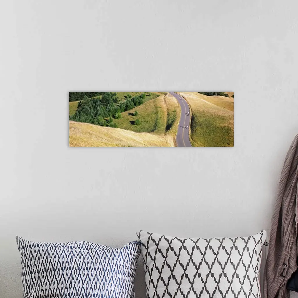 High angle view of a road running through a landscape, Mt Tamalpais, California wall art for home and office decor. Discover canvas art prints, photos, mural, big canvas art and framed wall art in GreatBigCanvas.com's varied collections.