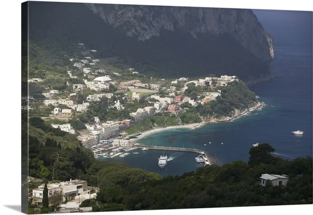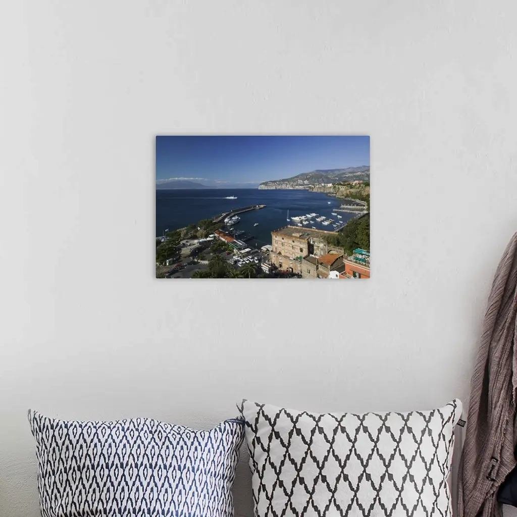 High angle view of a town, Marina Piccola, Sorrento, Naples, Campania, Italy wall art for home and office decor. Discover canvas art prints, photos, mural, big canvas art and framed wall art in GreatBigCanvas.com's varied collections.