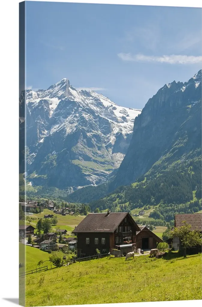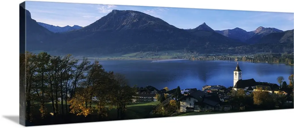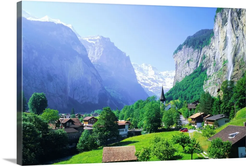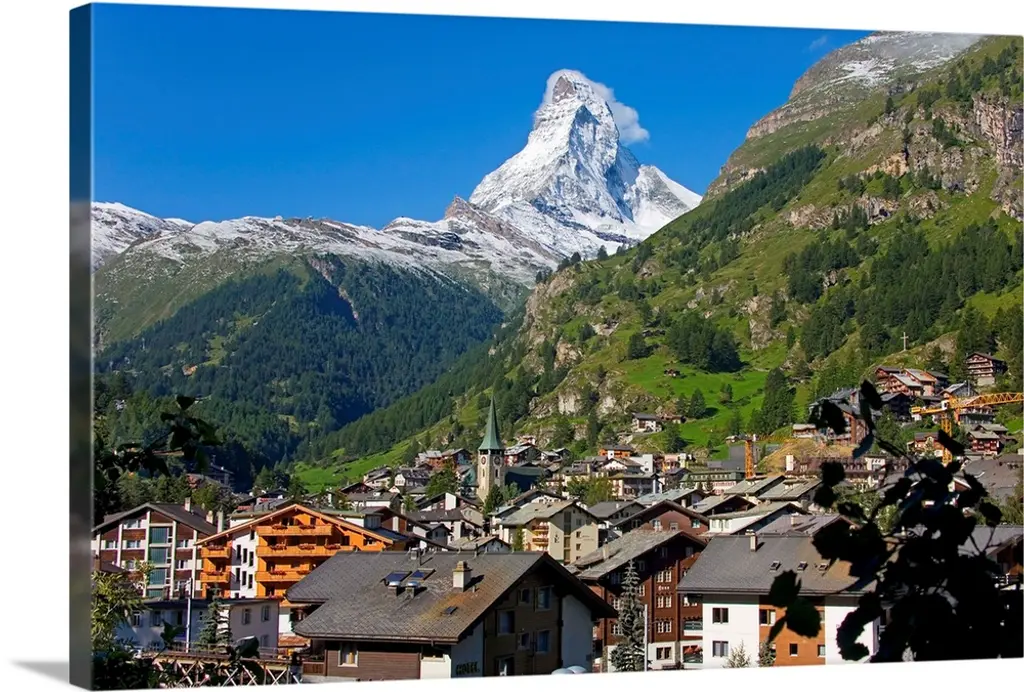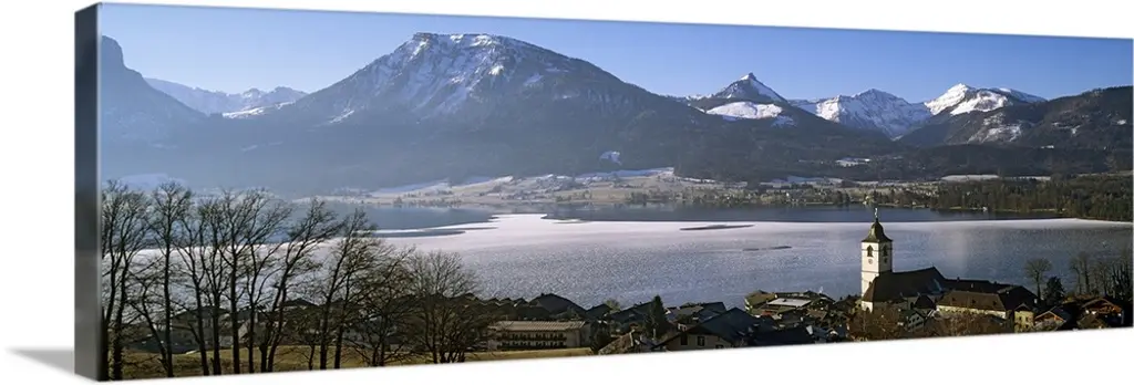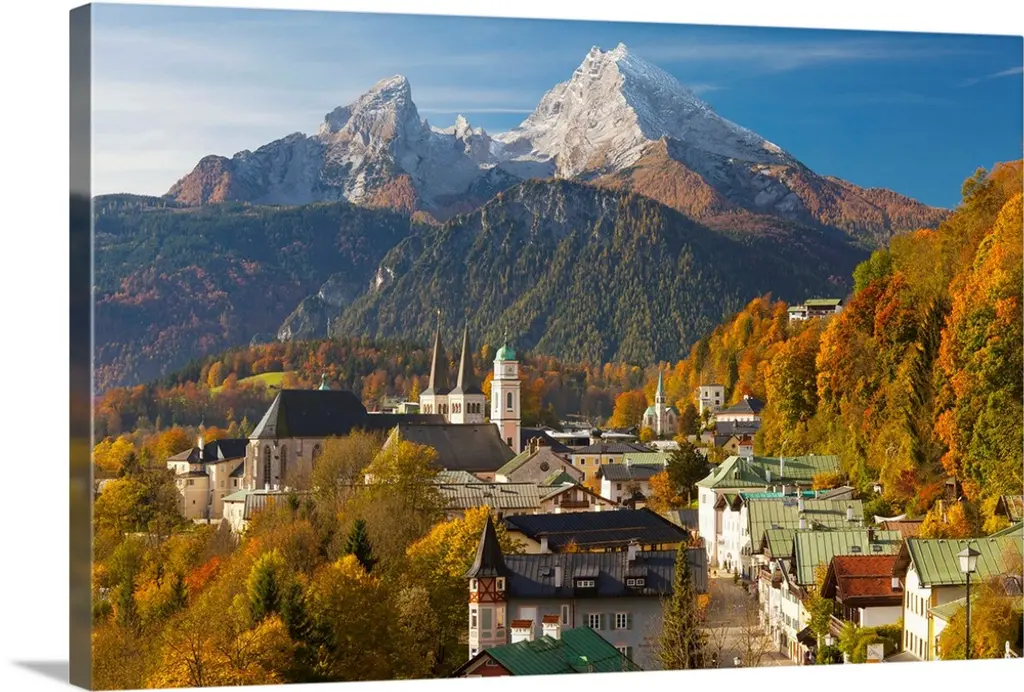 High angle view of a village on a landscape and a mountain range in the background, St. Anton, Austria wall art for home and office decor. Discover canvas art prints, photos, mural, big canvas art and framed wall art in GreatBigCanvas.com's varied collections.