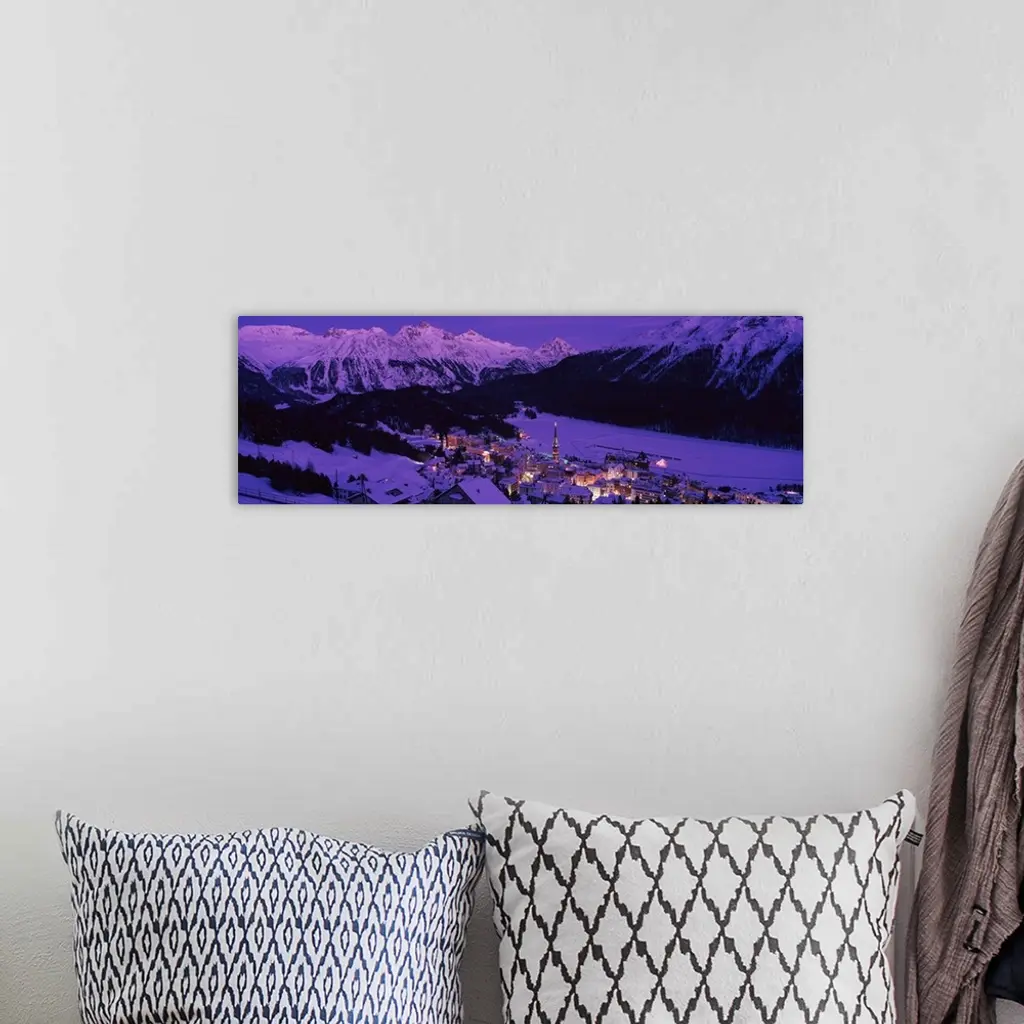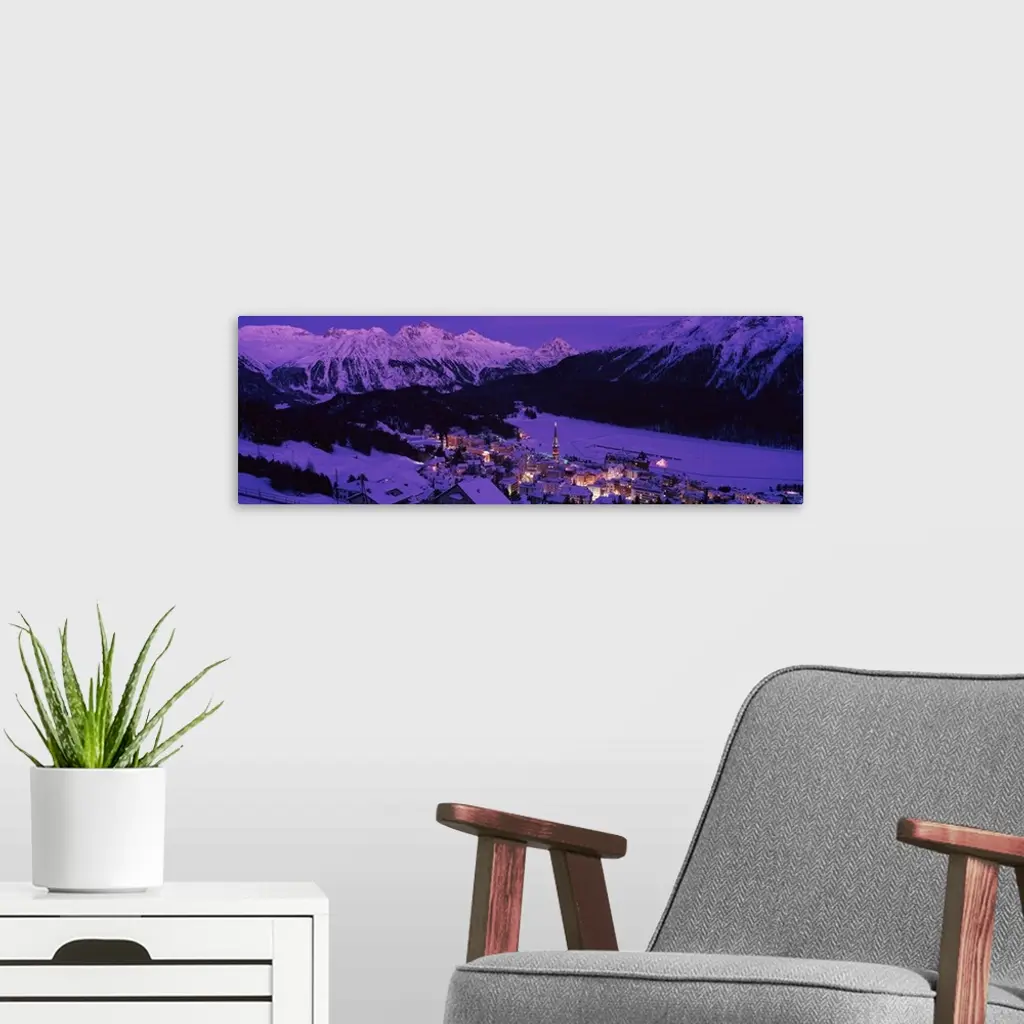 High angle view of a village, St. Moritz, Switzerland wall art for home and office decor. Discover canvas art prints, photos, mural, big canvas art and framed wall art in GreatBigCanvas.com's varied collections.