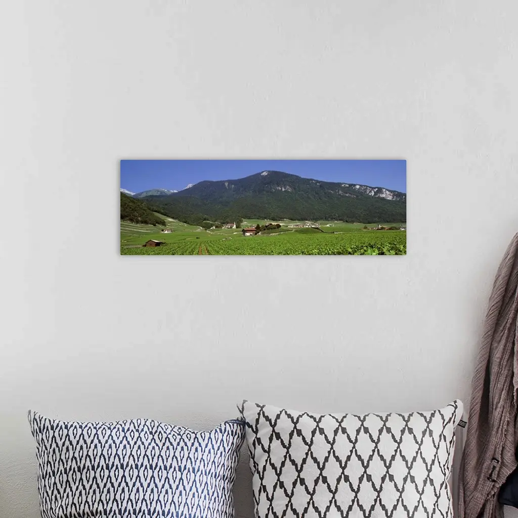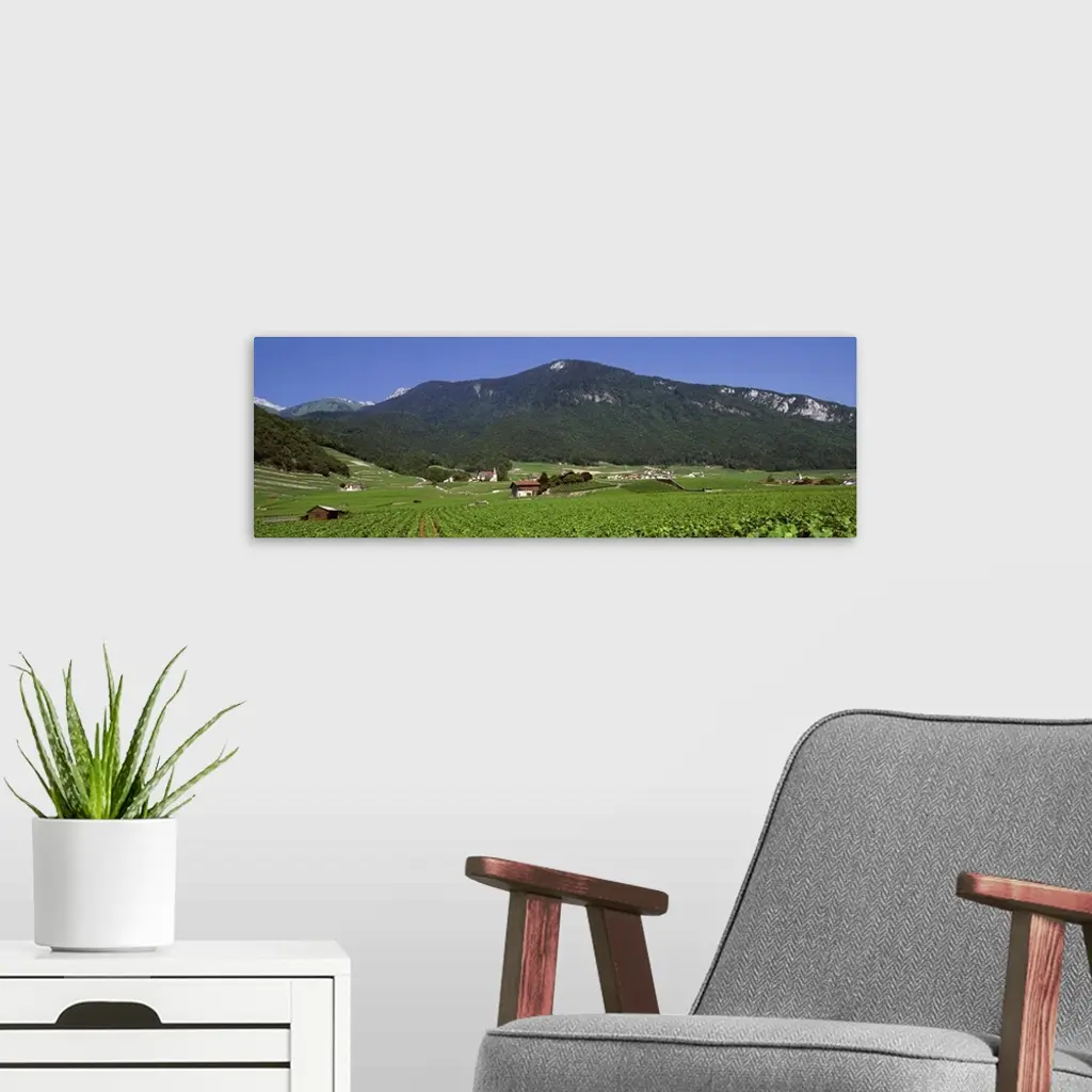 High angle view of a vineyard, Valais, Switzerland wall art for home and office decor. Discover canvas art prints, photos, mural, big canvas art and framed wall art in GreatBigCanvas.com's varied collections.