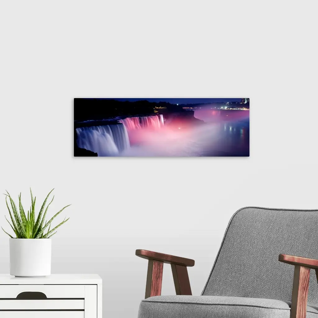 High Angle View Of A Waterfall At Night, Niagara Falls, New York State