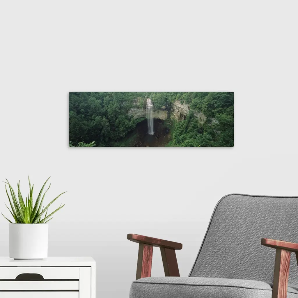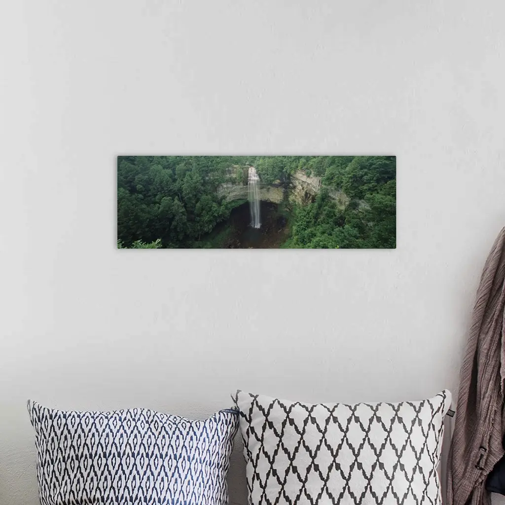 High angle view of a waterfall in a forest, Fall Creek Falls, Fall Creek Falls State Park, Tennessee wall art for home and office decor. Discover canvas art prints, photos, mural, big canvas art and framed wall art in GreatBigCanvas.com's varied collections.