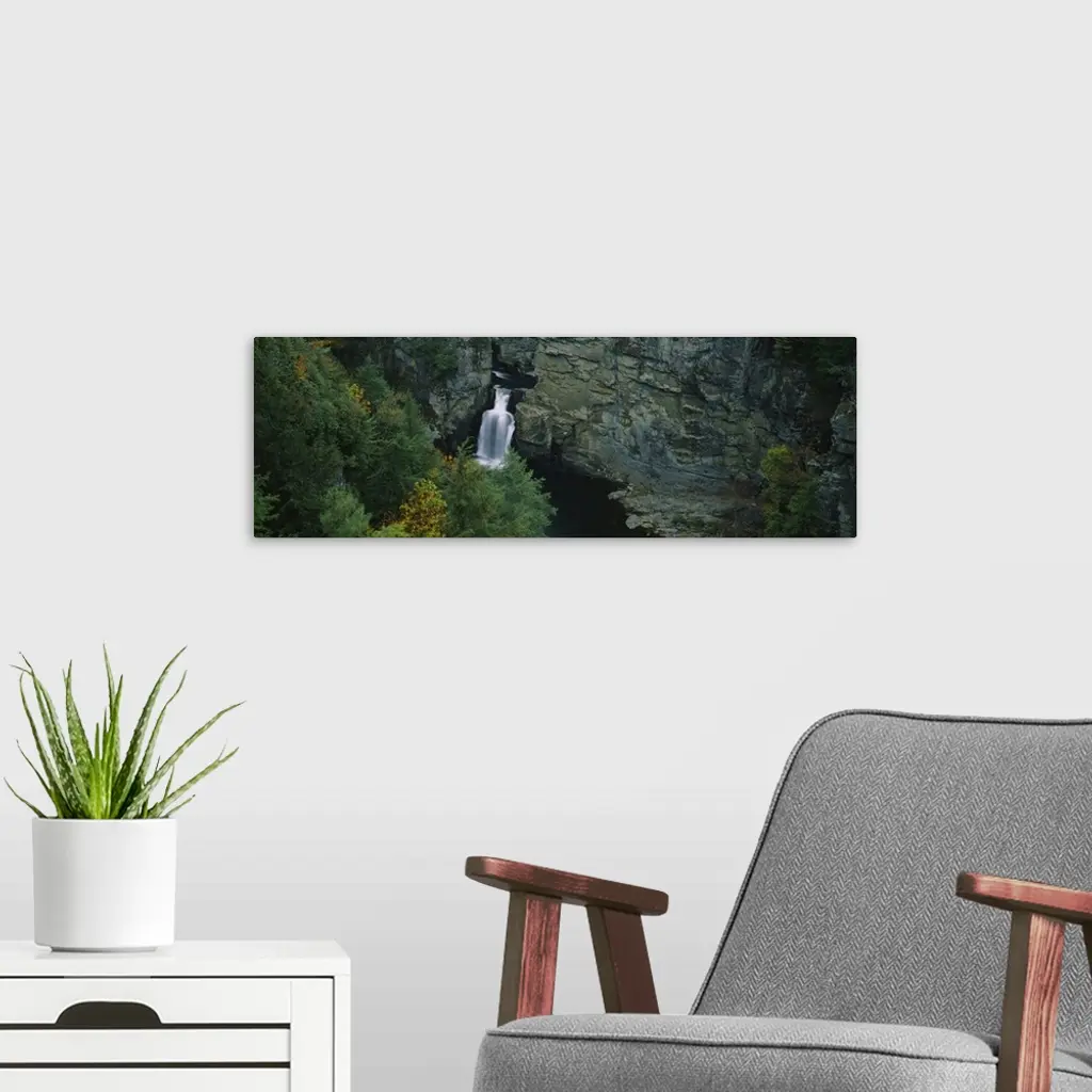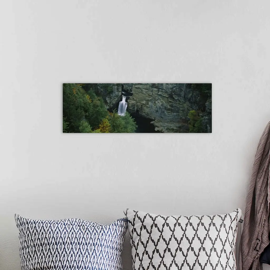 High angle view of a waterfall, Linville Falls, Blue Ridge Parkway, North Carolina wall art for home and office decor. Discover canvas art prints, photos, mural, big canvas art and framed wall art in GreatBigCanvas.com's varied collections.