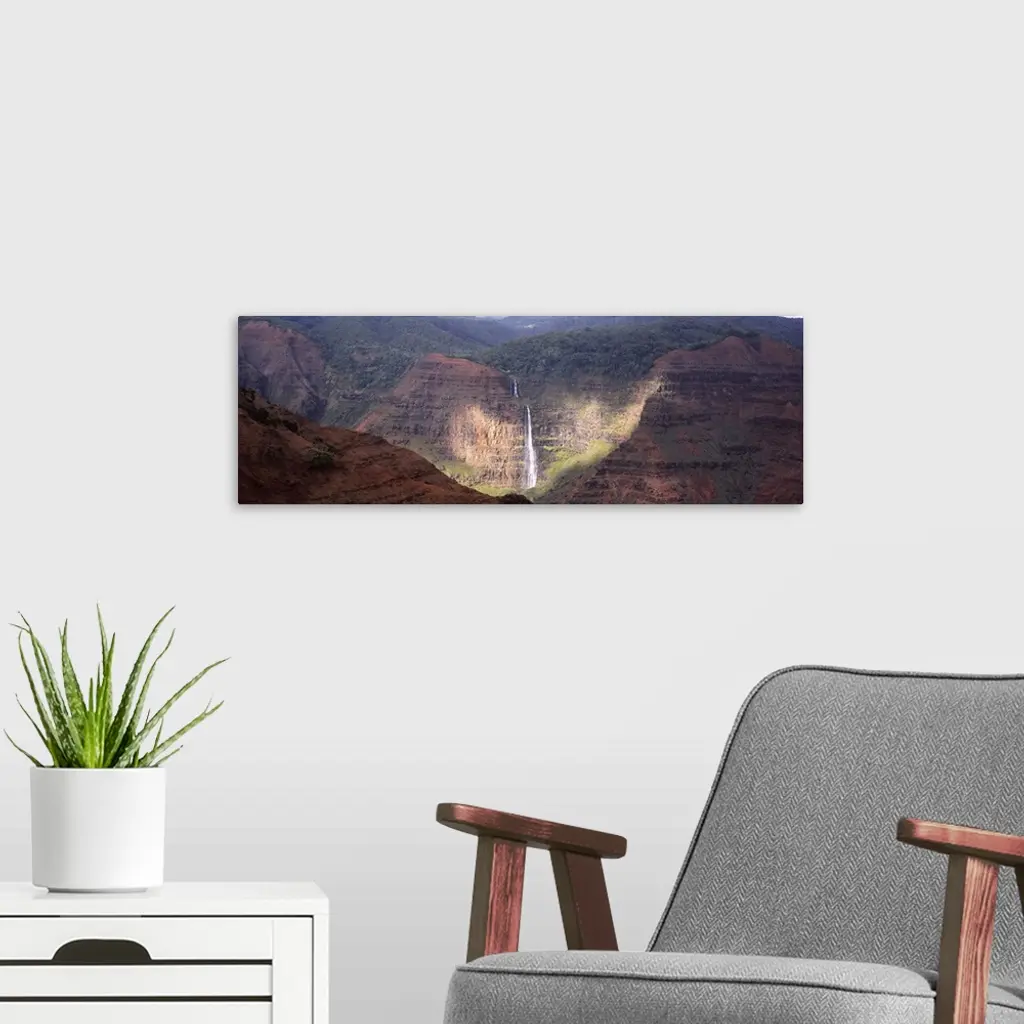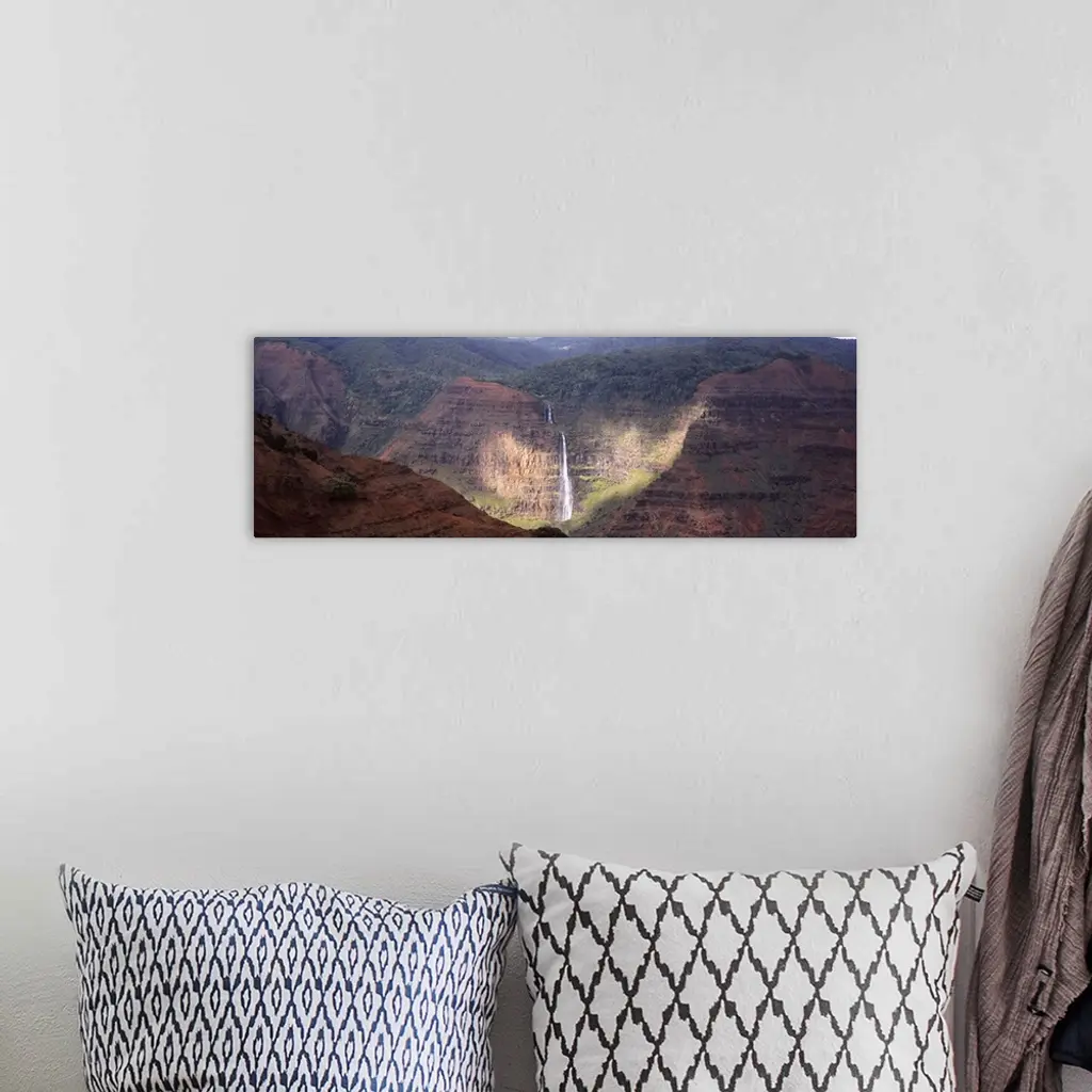 High angle view of a waterfall, Waimea Canyon, Waipoo Falls, Kauai, Hawaii wall art for home and office decor. Discover canvas art prints, photos, mural, big canvas art and framed wall art in GreatBigCanvas.com's varied collections.