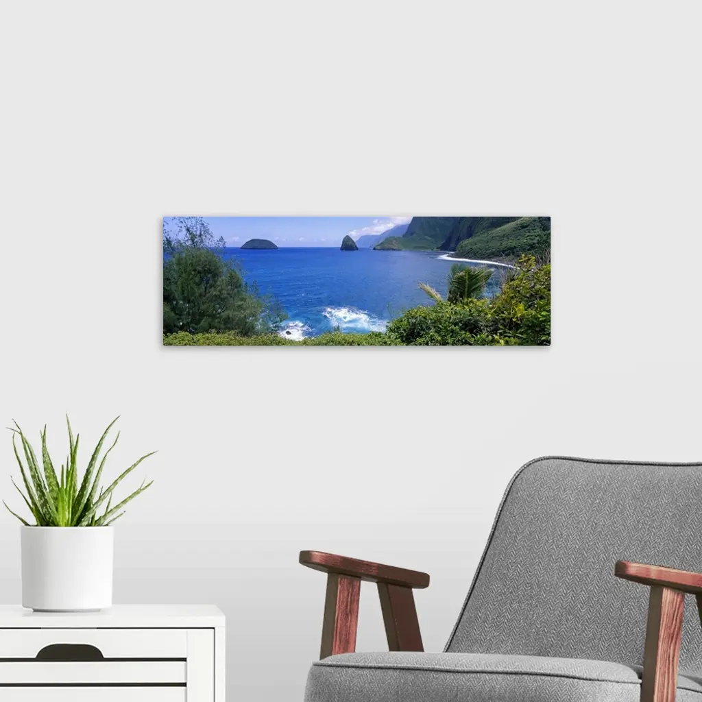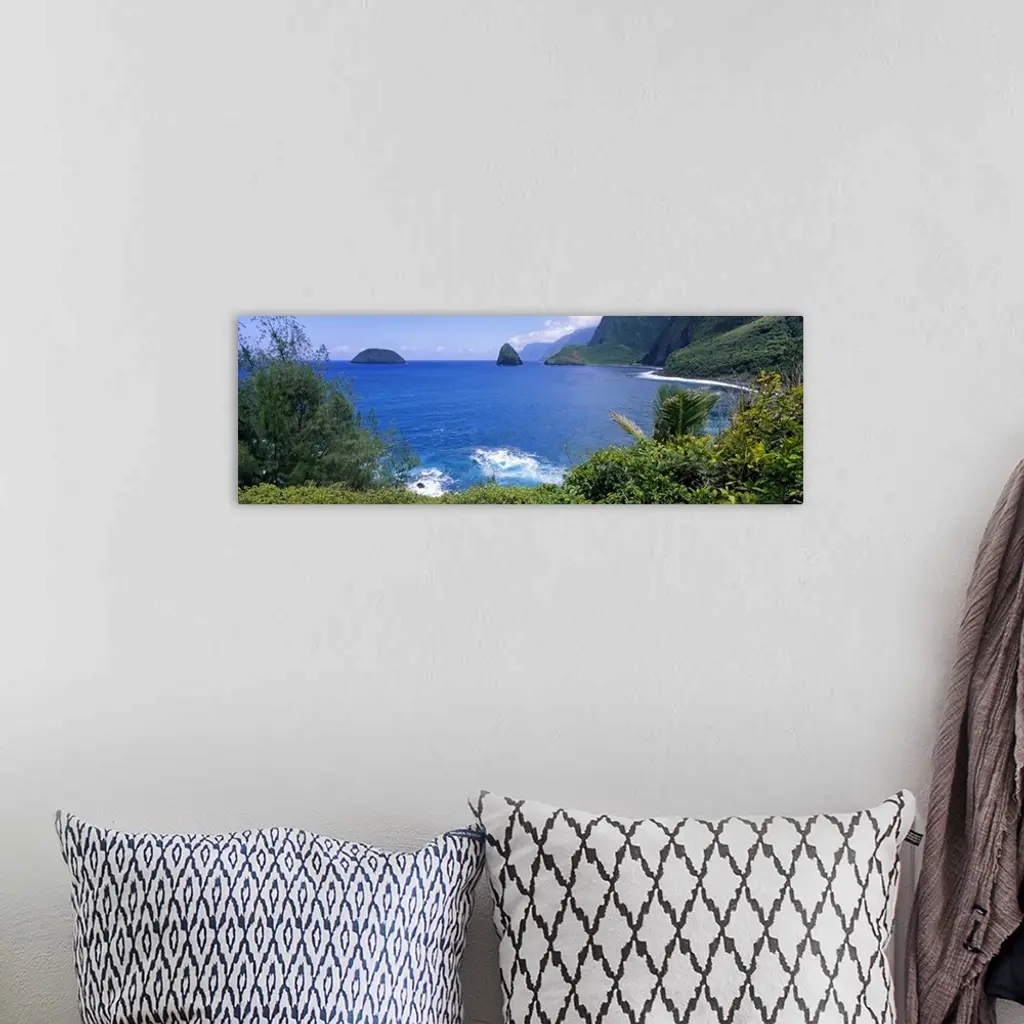 High angle view of bay at Kalawao, Kalaupapa Peninsula, Molokai, Hawaii wall art for home and office decor. Discover canvas art prints, photos, mural, big canvas art and framed wall art in GreatBigCanvas.com's varied collections.