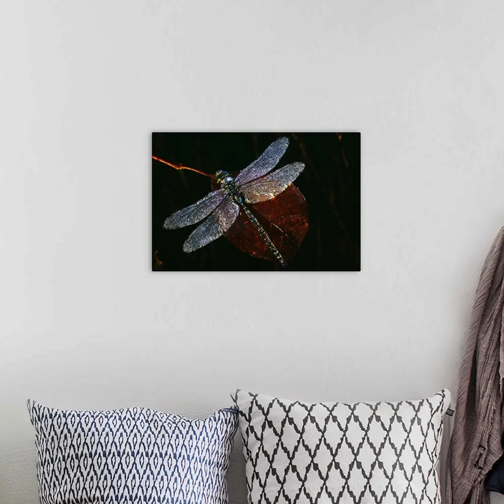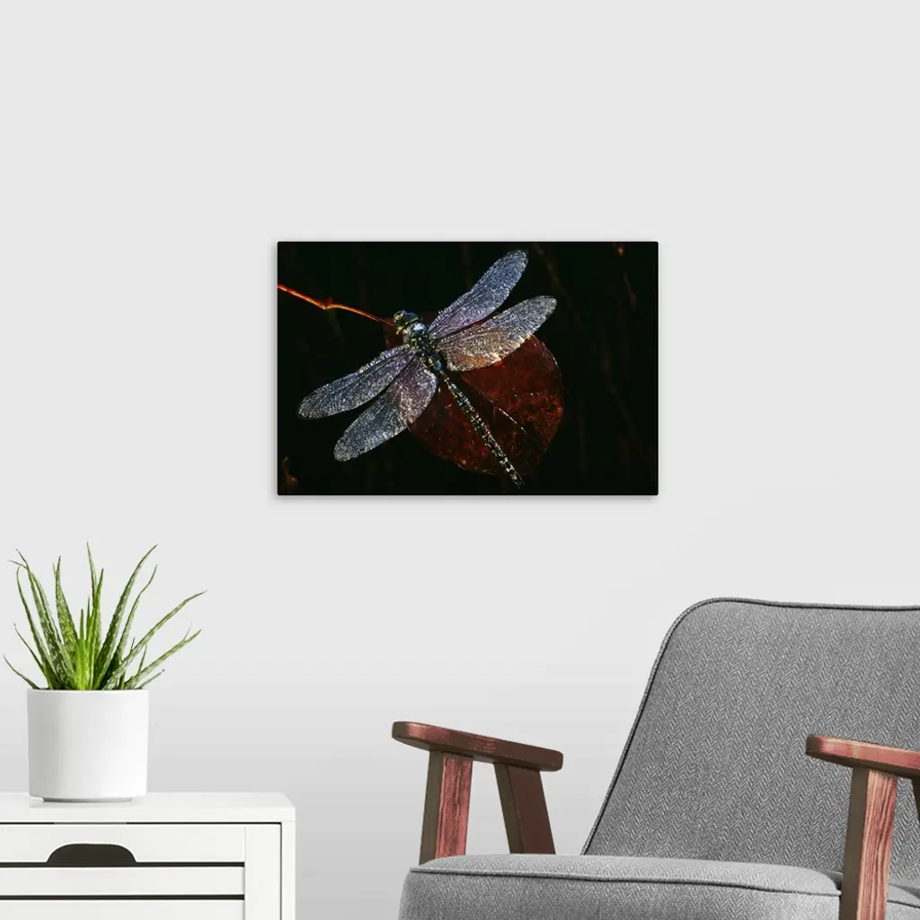 High angle view of blue darner dragonfly on leaf, close up, Canada. wall art for home and office decor. Discover canvas art prints, photos, mural, big canvas art and framed wall art in GreatBigCanvas.com's varied collections.