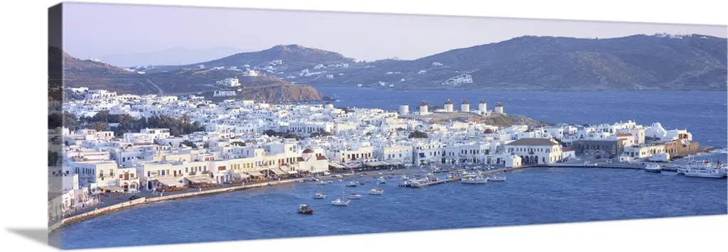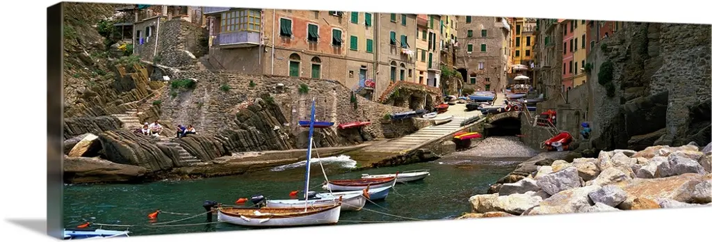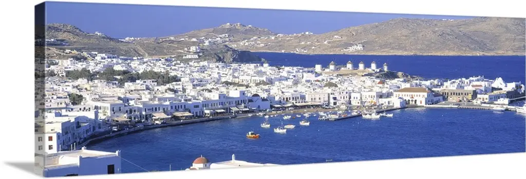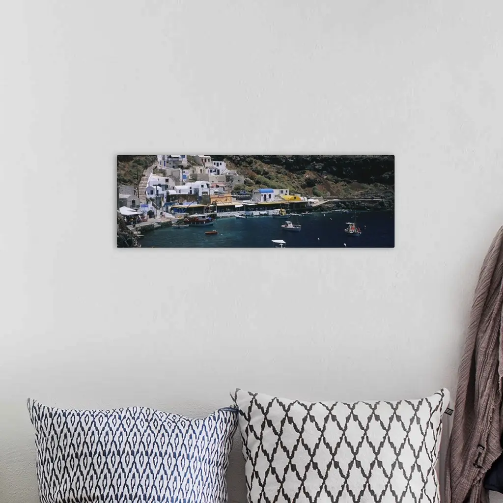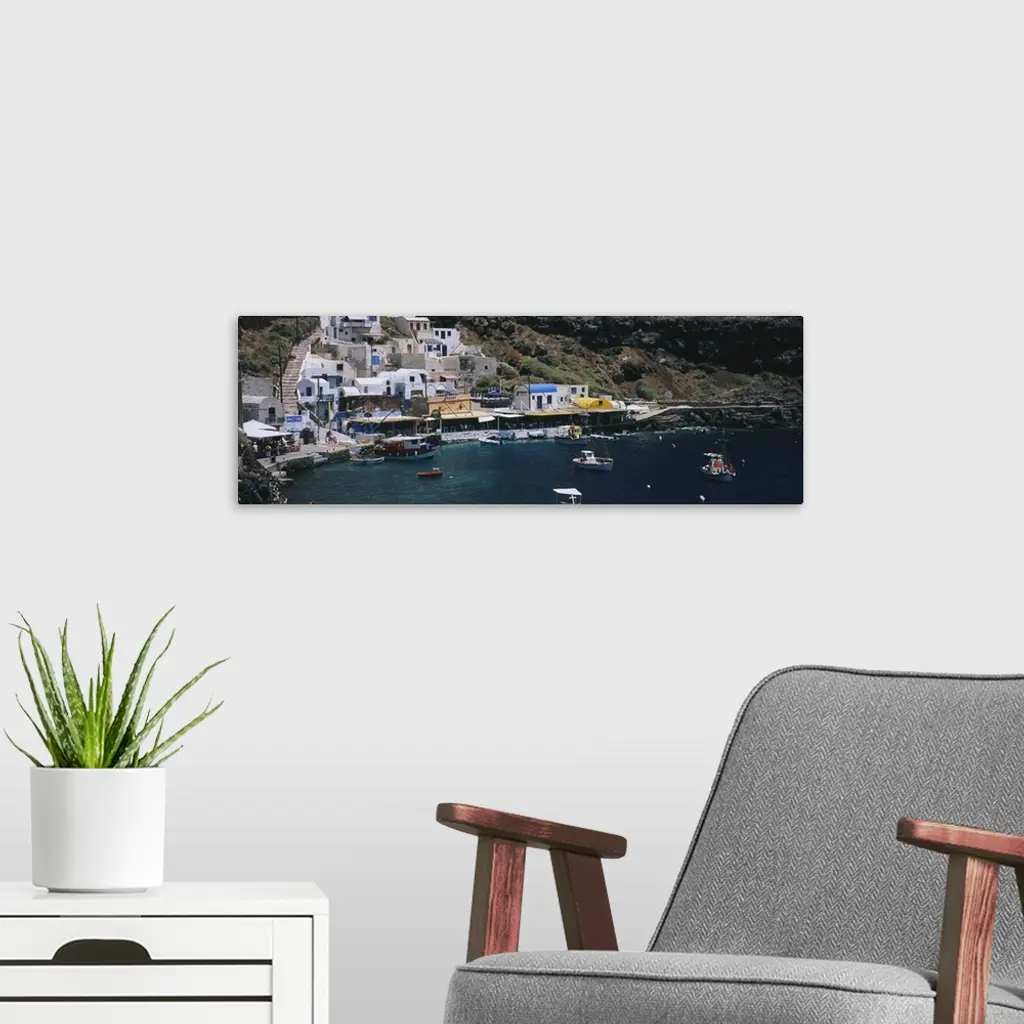 High angle view of boats in the sea, Ammoudi Bay, Oia, Santorini, Greece wall art for home and office decor. Discover canvas art prints, photos, mural, big canvas art and framed wall art in GreatBigCanvas.com's varied collections.