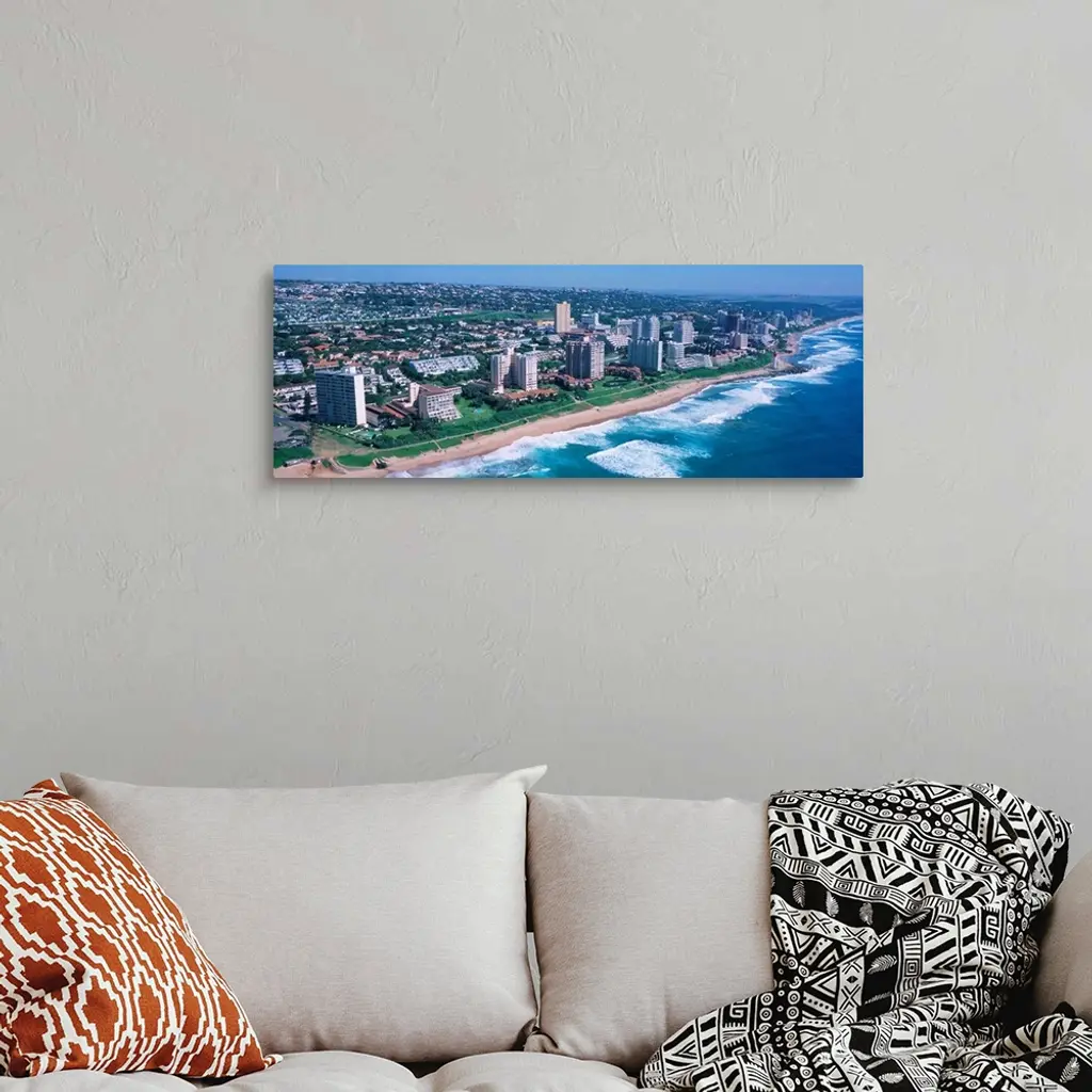 High angle view of buildings at the beachfront, Durban, South Africa wall art for home and office decor. Discover canvas art prints, photos, mural, big canvas art and framed wall art in GreatBigCanvas.com's varied collections.