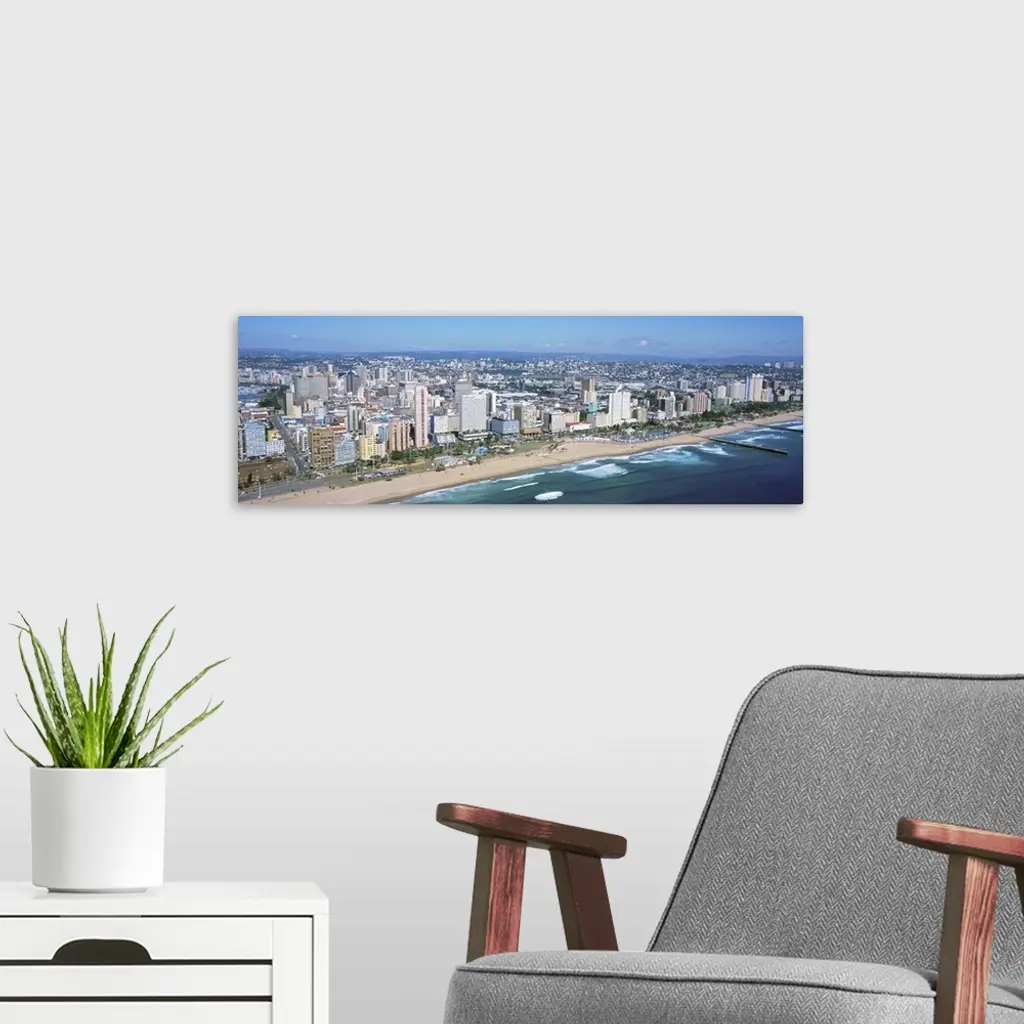 High angle view of buildings at the beachfront, Durban, South Africa wall art for home and office decor. Discover canvas art prints, photos, mural, big canvas art and framed wall art in GreatBigCanvas.com's varied collections.