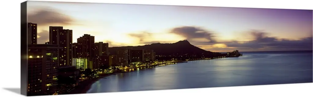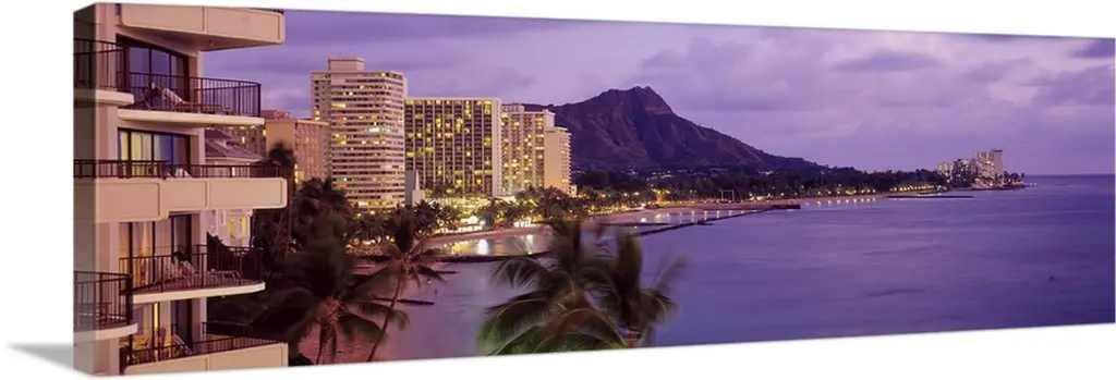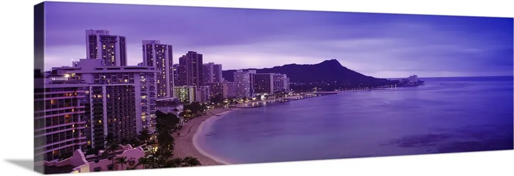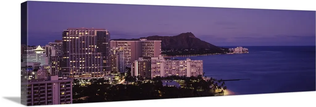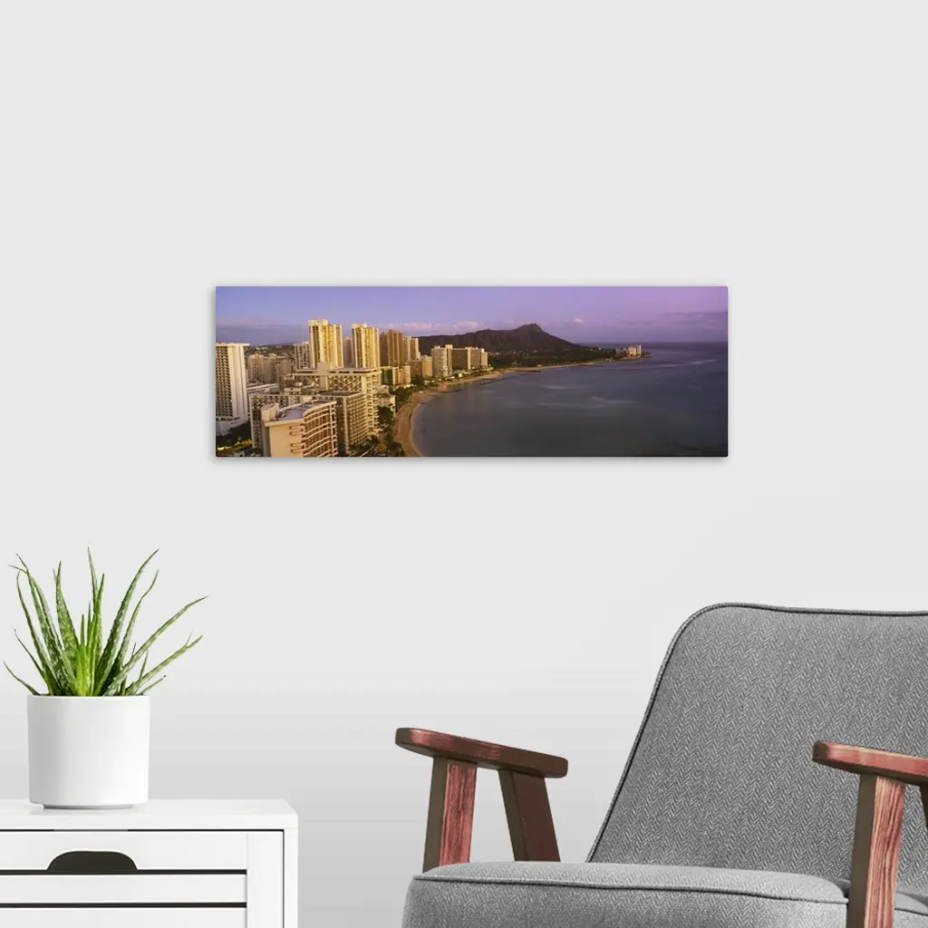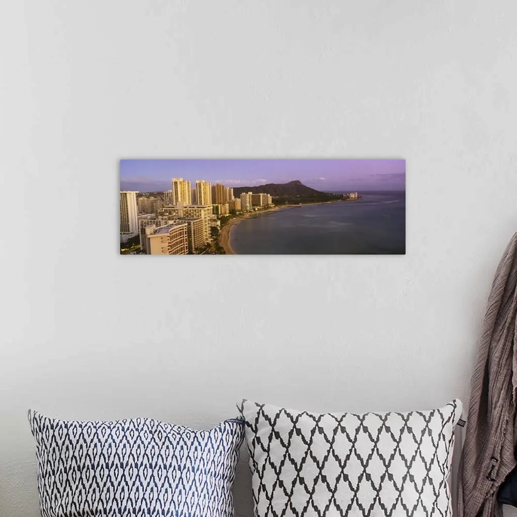 High angle view of buildings at the waterfront, Waikiki Beach, Honolulu, Oahu, Hawaii wall art for home and office decor. Discover canvas art prints, photos, mural, big canvas art and framed wall art in GreatBigCanvas.com's varied collections.
