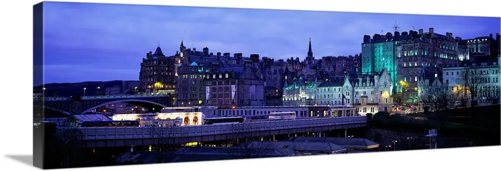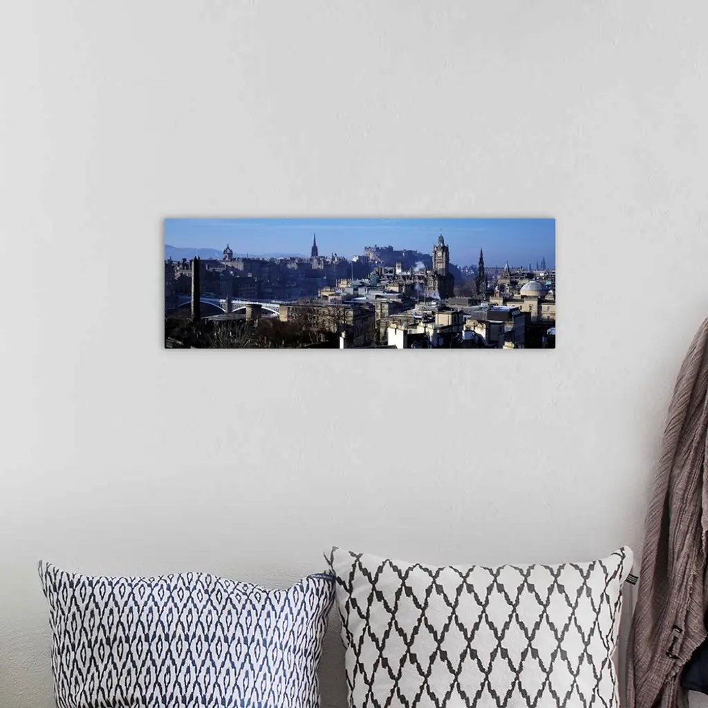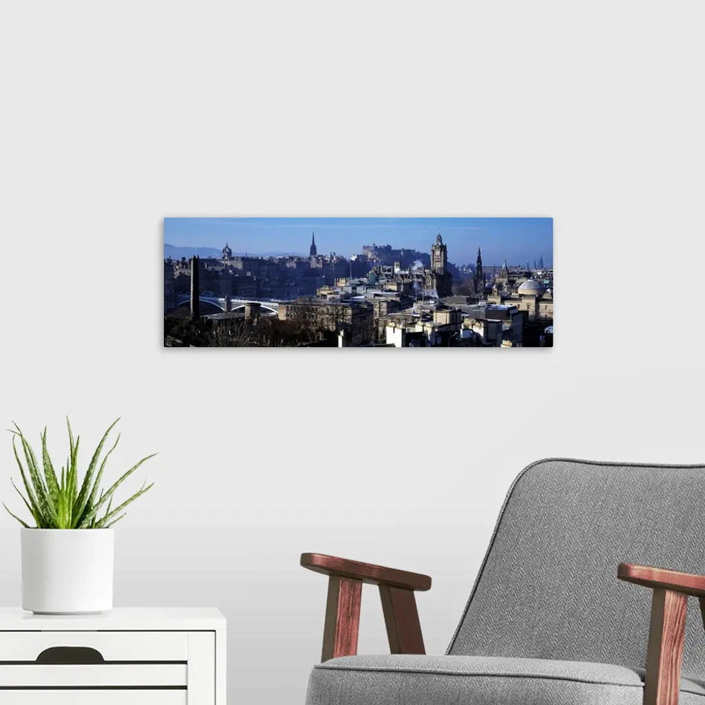 High angle view of buildings in a city, Edinburgh, Scotland wall art for home and office decor. Discover canvas art prints, photos, mural, big canvas art and framed wall art in GreatBigCanvas.com's varied collections.
