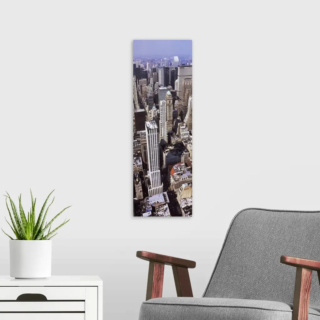 High angle view of buildings in a city, Manhattan, New York City, New York State wall art for home and office decor. Discover canvas art prints, photos, mural, big canvas art and framed wall art in GreatBigCanvas.com's varied collections.