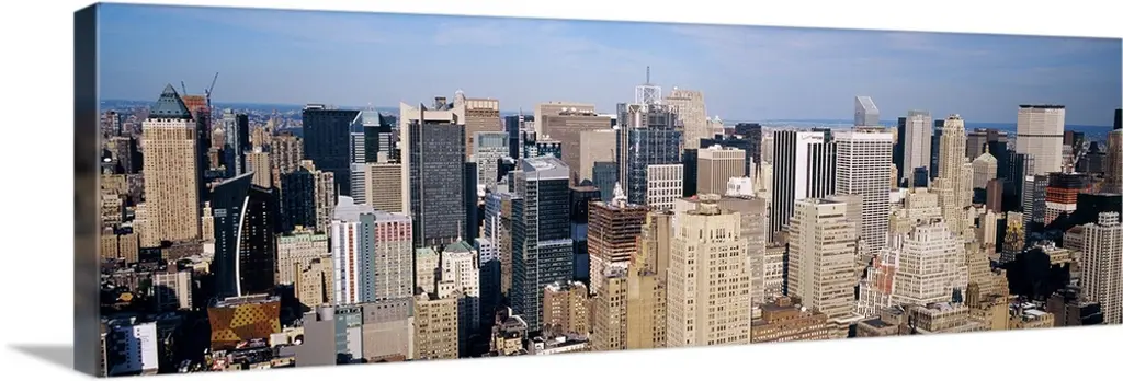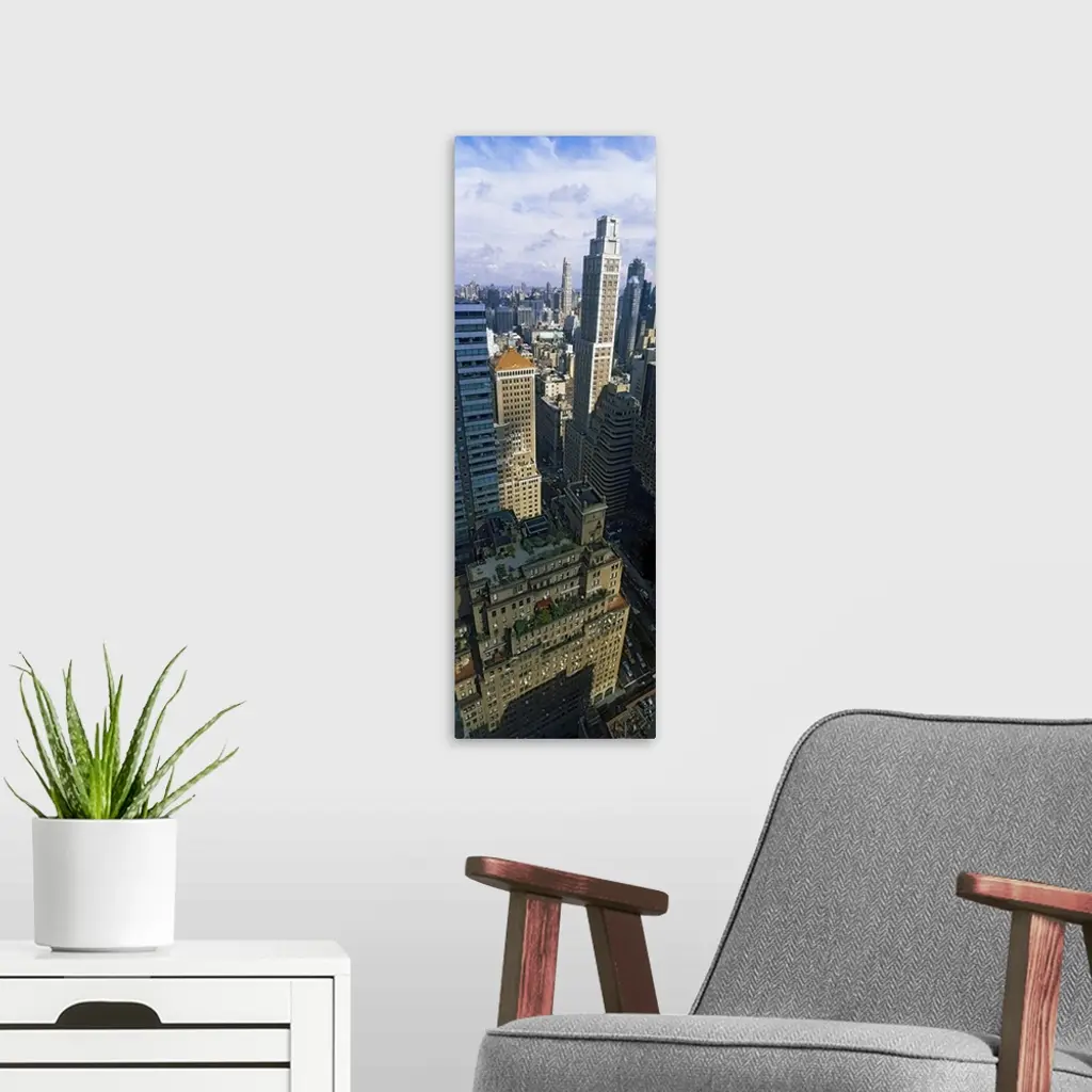 High angle view of buildings in a city, Manhattan, New York City, New York State wall art for home and office decor. Discover canvas art prints, photos, mural, big canvas art and framed wall art in GreatBigCanvas.com's varied collections.