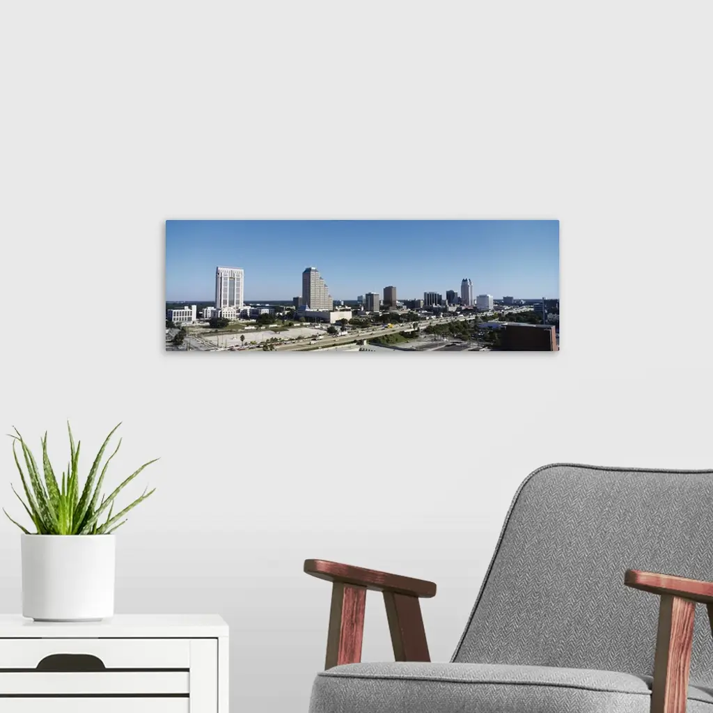 High angle view of buildings in a city, Orlando, Florida wall art for home and office decor. Discover canvas art prints, photos, mural, big canvas art and framed wall art in GreatBigCanvas.com's varied collections.