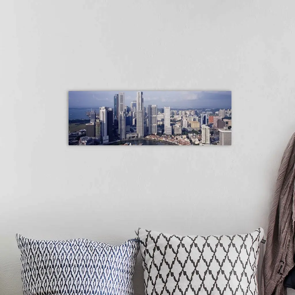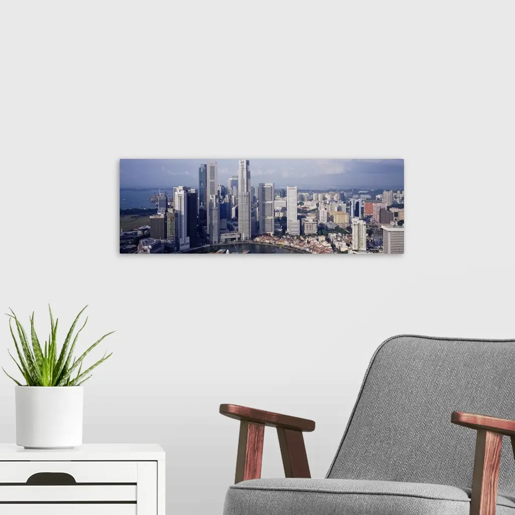 High angle view of buildings in a city, Singapore wall art for home and office decor. Discover canvas art prints, photos, mural, big canvas art and framed wall art in GreatBigCanvas.com's varied collections.