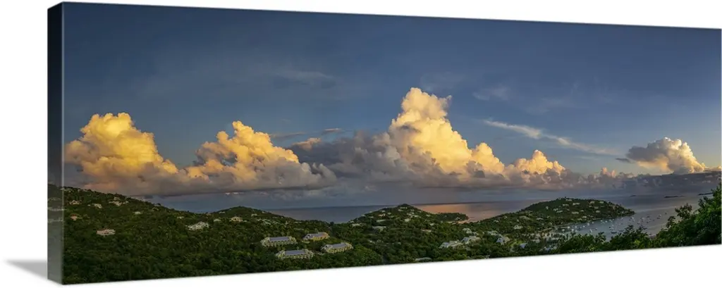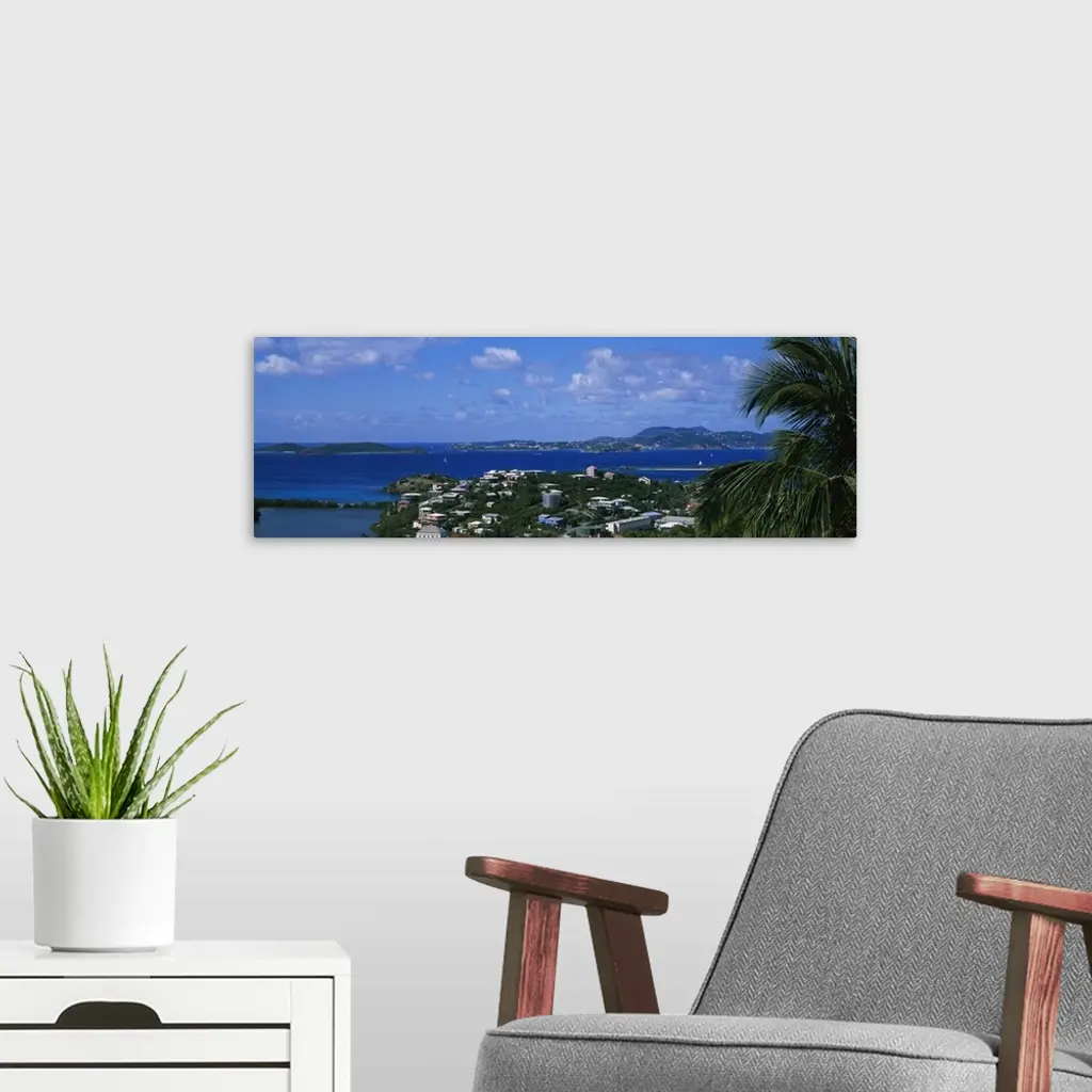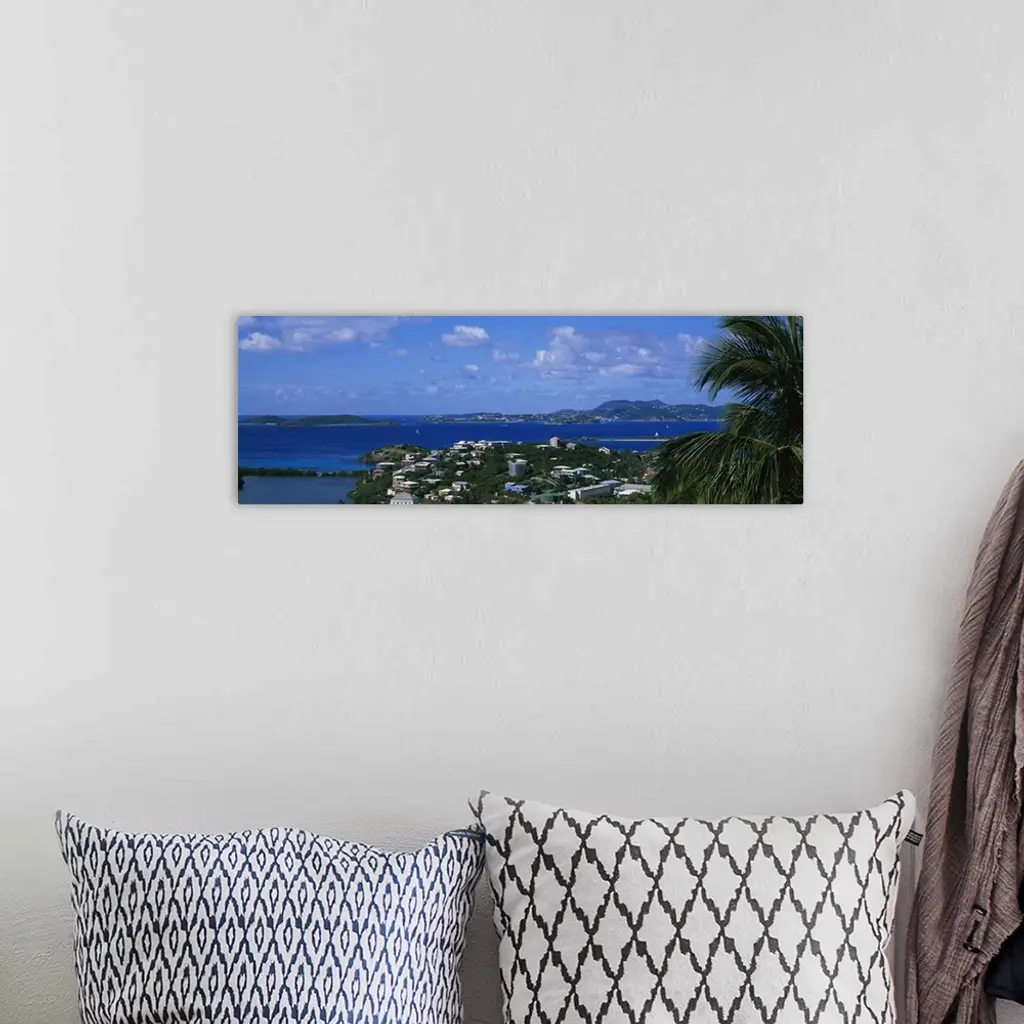 High angle view of buildings on an island, St. Thomas, Pillsbury Sound, US Virgin Islands wall art for home and office decor. Discover canvas art prints, photos, mural, big canvas art and framed wall art in GreatBigCanvas.com's varied collections.