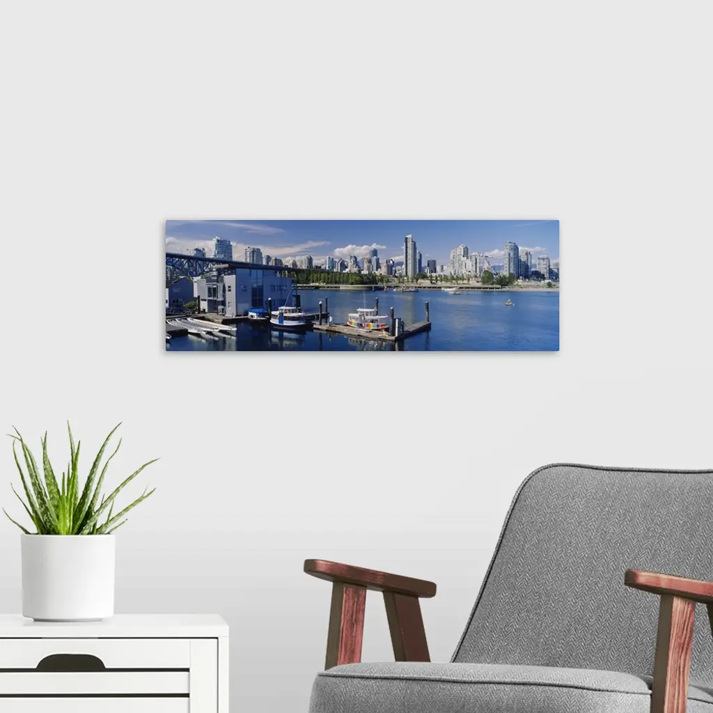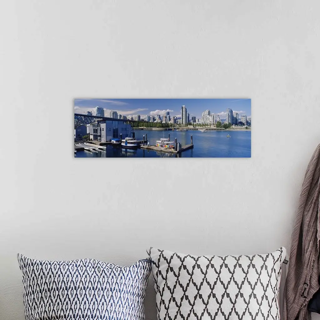 High angle view of buildings on the waterfront, False Creek, Vancouver, British Columbia, Canada wall art for home and office decor. Discover canvas art prints, photos, mural, big canvas art and framed wall art in GreatBigCanvas.com's varied collections.