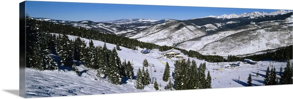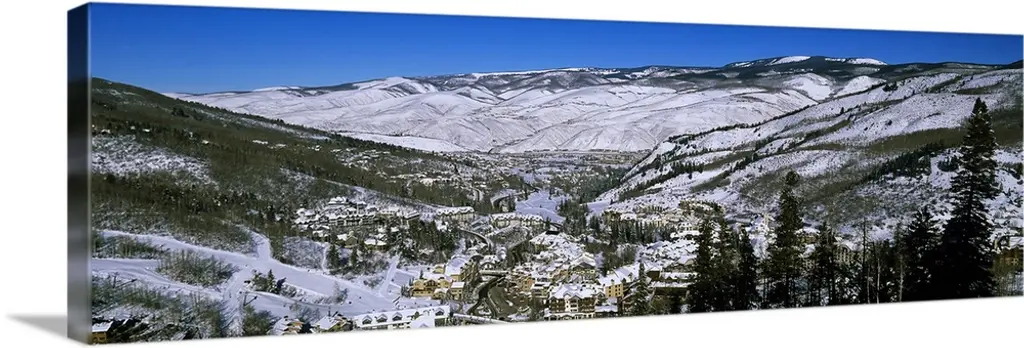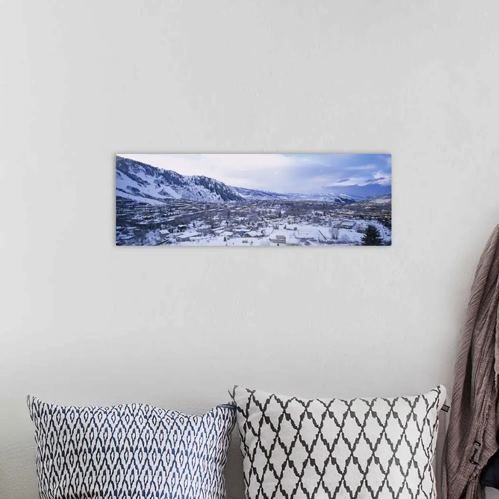 High angle view of houses covered with snow, Aspen, Colorado wall art for home and office decor. Discover canvas art prints, photos, mural, big canvas art and framed wall art in GreatBigCanvas.com's varied collections.