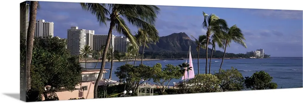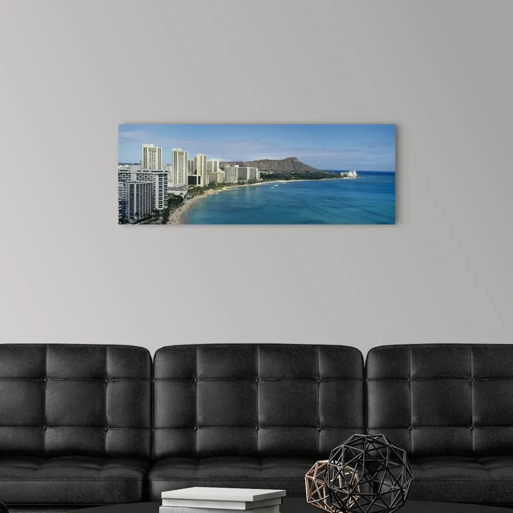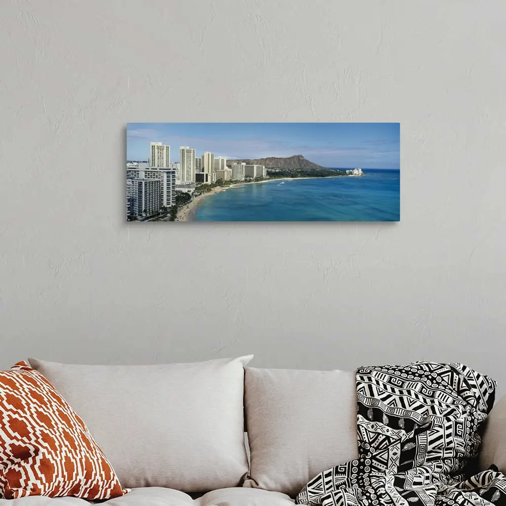 High angle view of skyscrapers on the waterfront, Waikiki, Oahu, Hawaii wall art for home and office decor. Discover canvas art prints, photos, mural, big canvas art and framed wall art in GreatBigCanvas.com's varied collections.