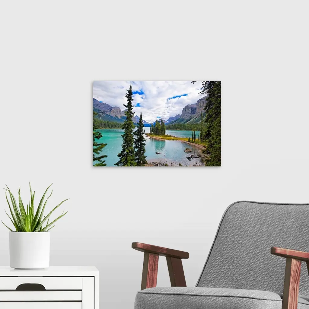 High Angle View of Spirit Island, Maligne Lake, Jasper National Park, Alberta, Canada