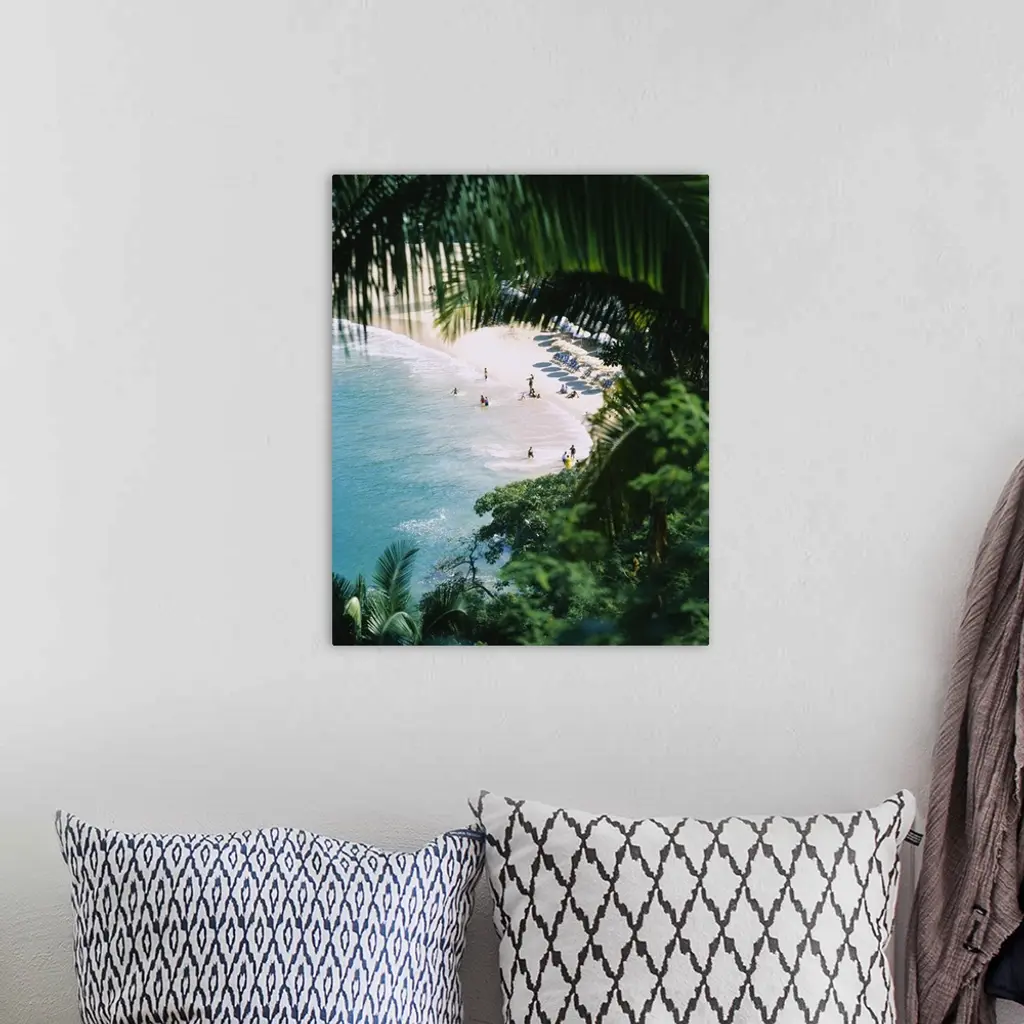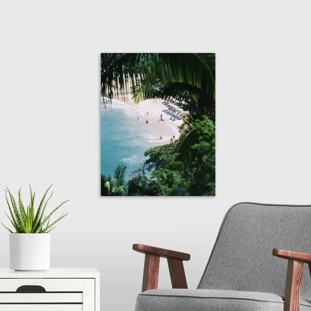 High angle view of tourists on the beach, Mismaloya Beach, Puerto Vallarta, Mexico wall art for home and office decor. Discover canvas art prints, photos, mural, big canvas art and framed wall art in GreatBigCanvas.com's varied collections.