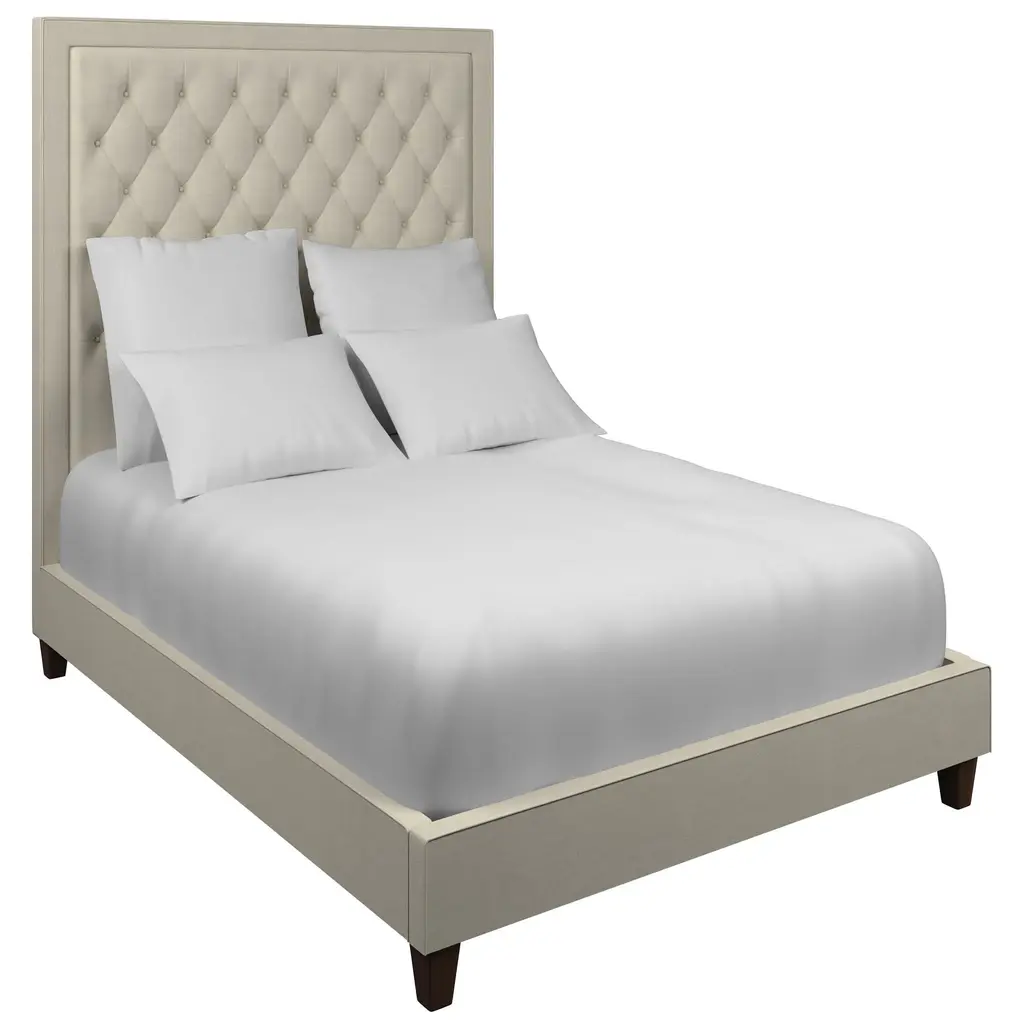 Dramatically scaled and clean lined, our Stonington bed awaits your fabric choice. This custom-upholstered bed makes a showstopping statement in any bedroom. A mitered corner border introduces a subtle visual contrast that adds the final polish. Exclusively available from Annie Selke.