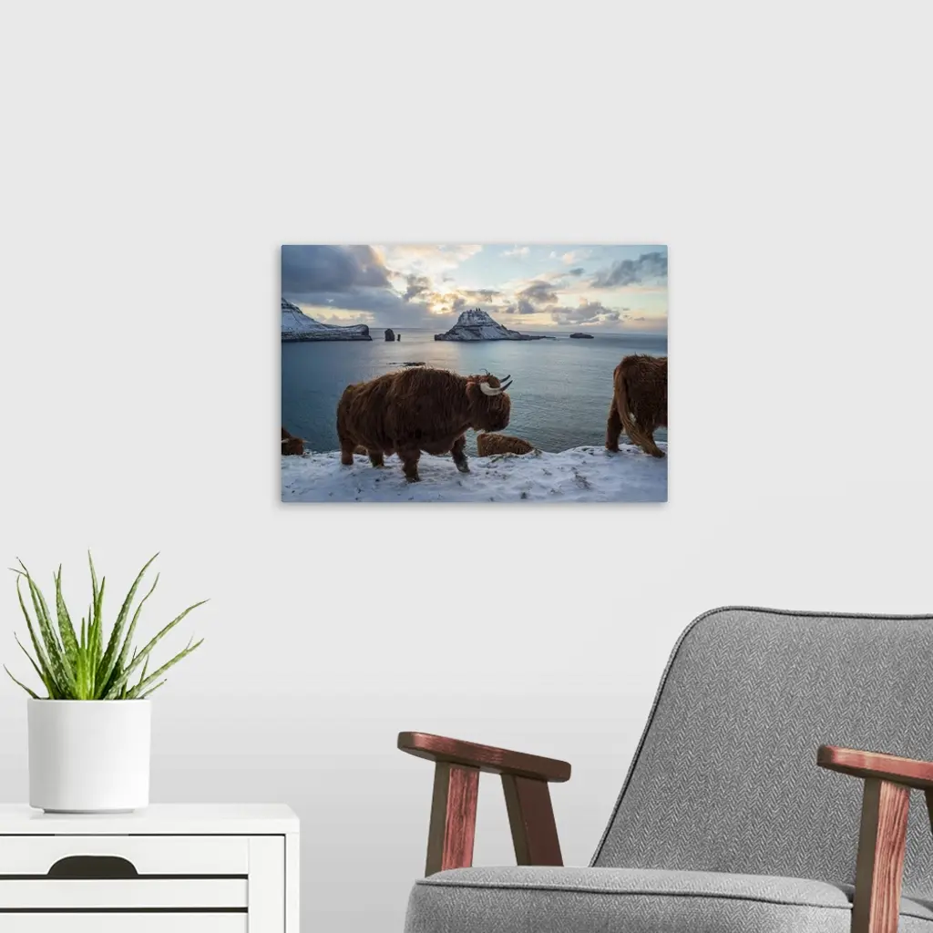 Highland Cow On The Island Of Vagar, Faroe Islands