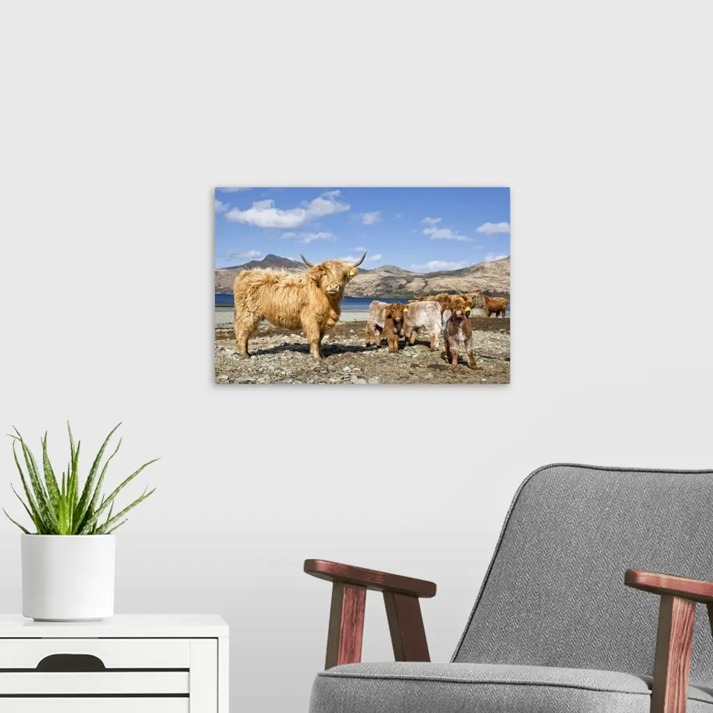 Highland Cows, Loch Buie, Isle of Mull, Argyll and Bute, Inner Hebrides, Scotland, UK