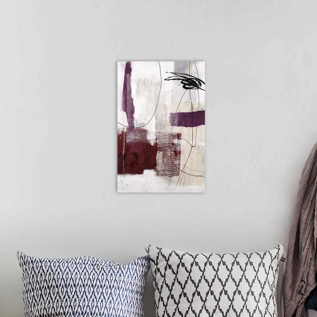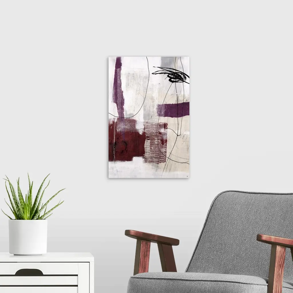 This vertical collage contains abstract elements that looks like different types of weaved fabric in white with textured paper.