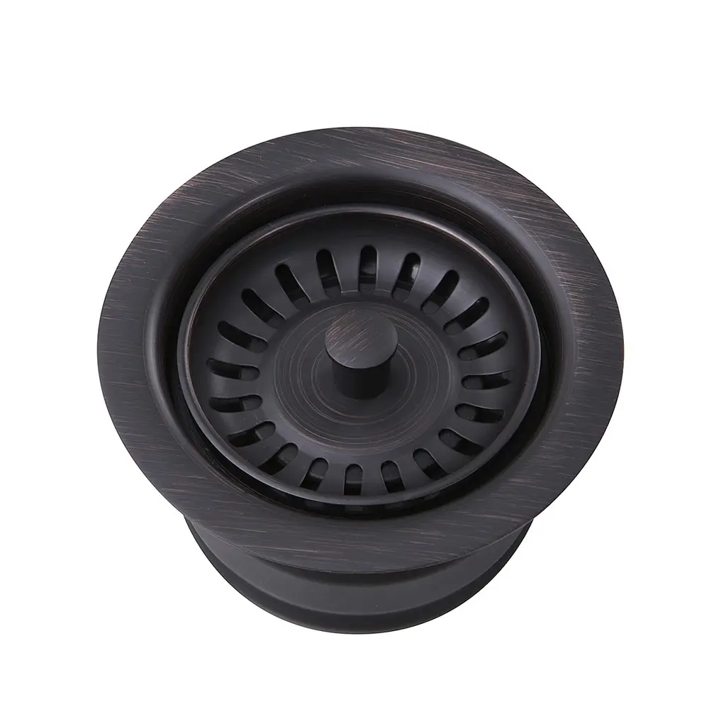 Complete your kitchen sink in a classic style with this oil-rubbed, bronze-finished disposal drain from the Highpoint Collection. Featuring a standard 3.5-inch size and longer collar length, this drain assembly quickly connects through thicker sinks to most garbage disposal systems. The included strainer brings full functionality to this drain unit.Food safeFits standard 3.5-inch kitchen drain openingsFits Insinkerator ((ISE) old and new models): Kenmore, Maytag, Ace, Jenn-Air, Kitchen Aid, Whirlpool disposalsExtended collar is designed to fit fireclay applications and garbage disposalsFor disposer with 3.375-inch I.D. and 3 bolt mountingDesigned For Thicker Sinks Such As Fireclay or Stone Farmhouse Sinks.Will not work if you do not have a garbage disposal