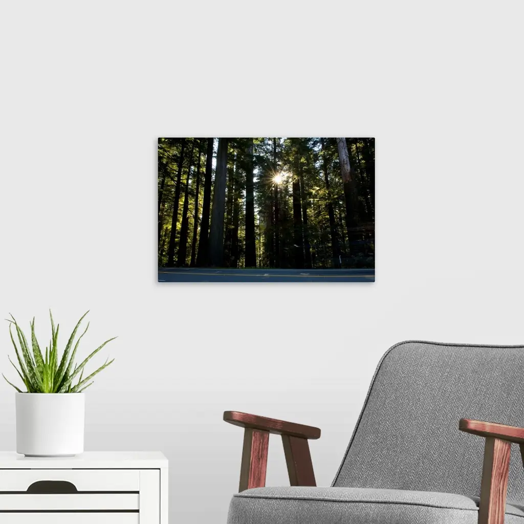 Highway passing through a redwood forest, US Route 101, Del Norte Coast Redwoods State Park, Del Norte County, California, wall art for home and office decor. Discover canvas art prints, photos, mural, big canvas art and framed wall art in GreatBigCanvas.com's varied collections.