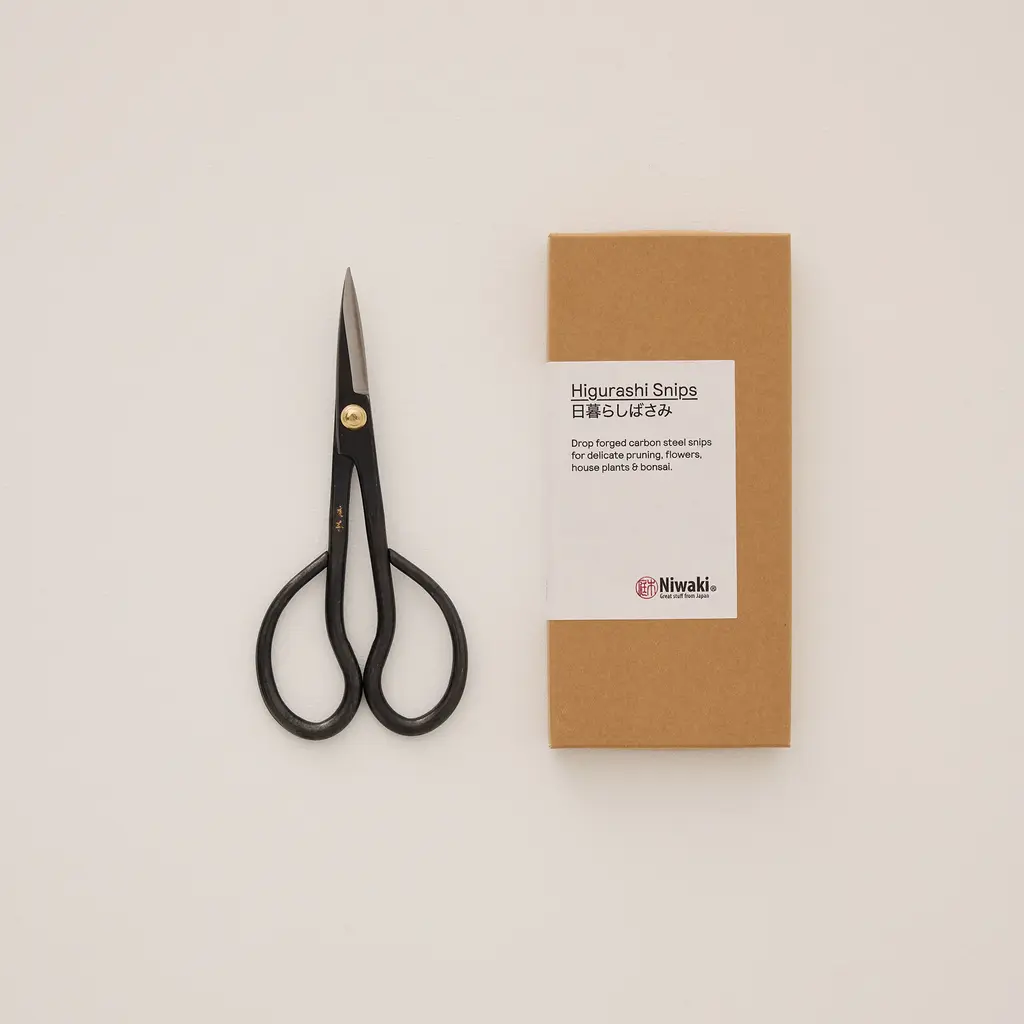 For precise and delicate pruning tasks, choose the Higurashi Snips by Niwaki. Handcrafted in Japan from the finest drop-forged carbon steel, they excel at cutting flowers, tending houseplants, shaping bonsai, and more with slender blades that effortlessly maneuver tight spots without causing damage. Keep them in optimal condition by always cutting diagonally across branches and use the base instead of the tips for heavier cuts (up to Ø3mm). Although Japanese carbon steel is durable, it can chip if mishandled, so use with care.