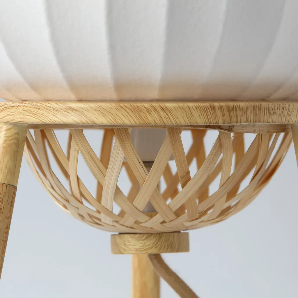 Hikari - Japanese Boho-Chic Table Lamp, Woven Bamboo & Silk Shade, Dimmer Switch - 19.68" X 10" - 19.68" X 10" - Beige/white