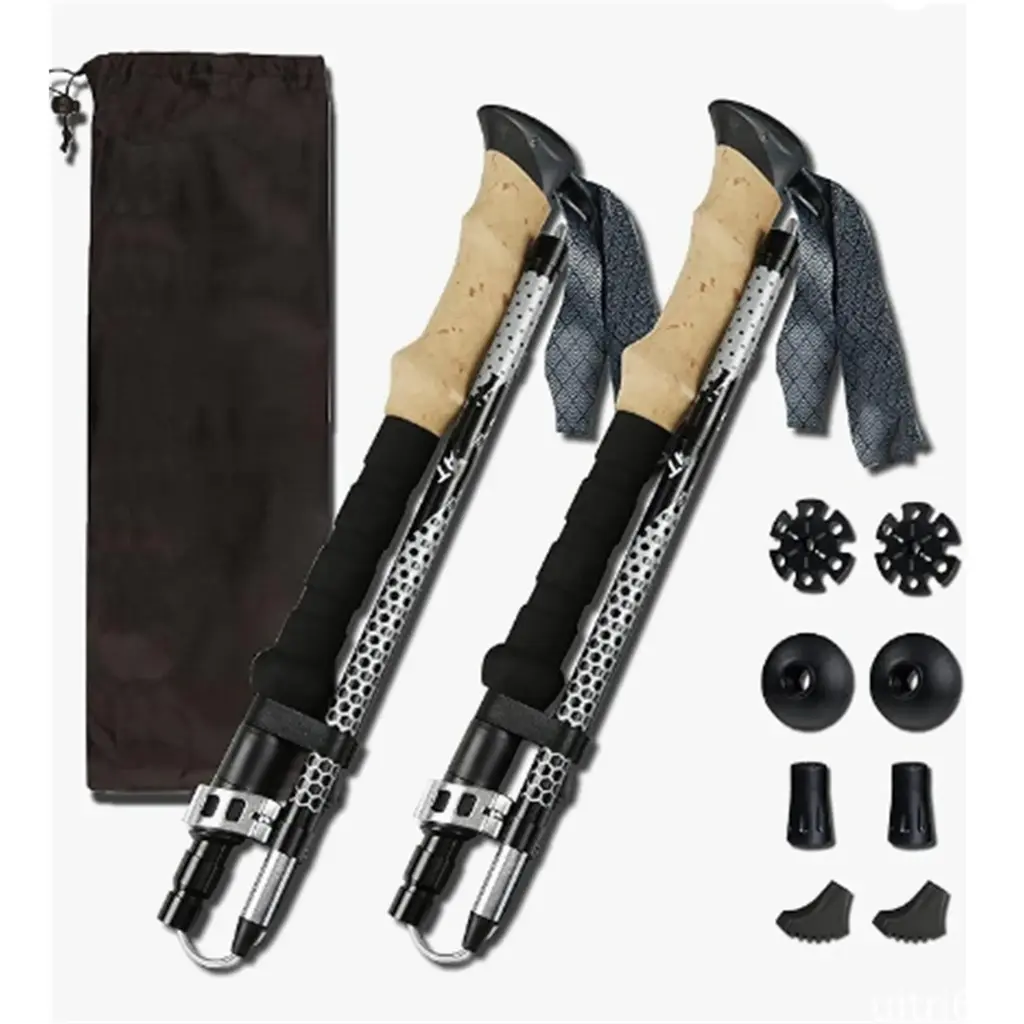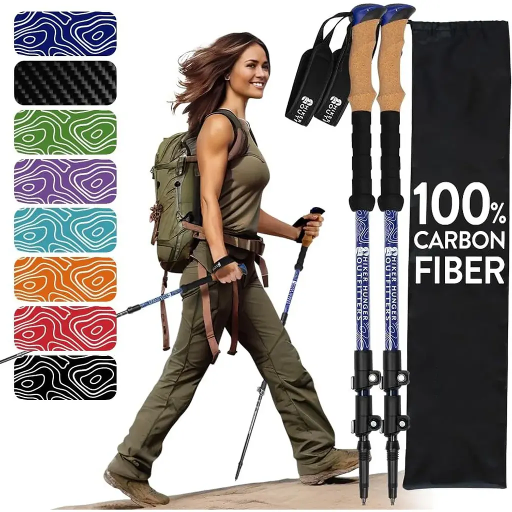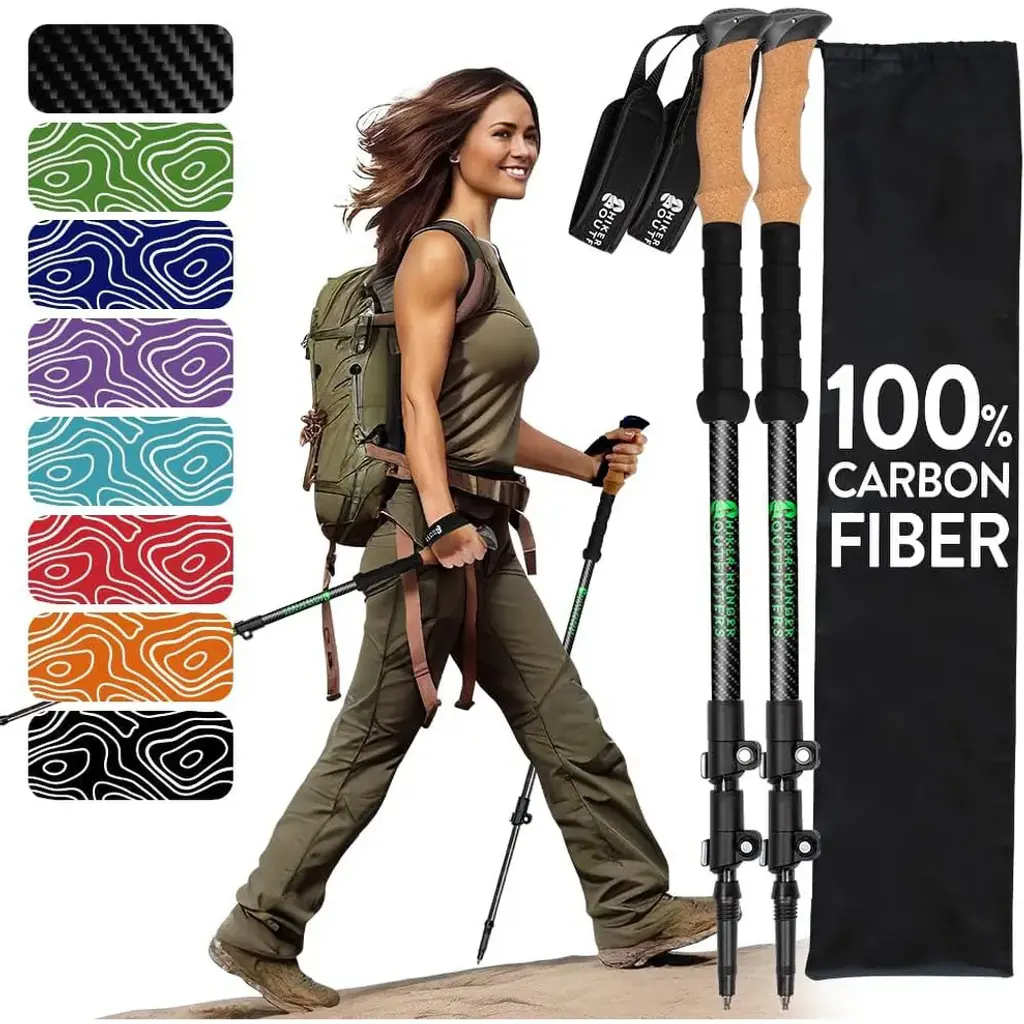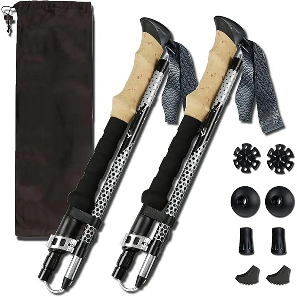 Increase Your Foot Print! Ergonomic Trekking Poles (set of 2) give you reason to increase the steps you take. Providing extra support and walk comfortably with these hiking poles. Cork-texture grip wicks away sweat from hands keeping them drier. Firmer grip in muddy areas with added mud stops. EVA foam shafts allow for a strong grip in extreme all terrain environments. The poles are the perfect gift for outdoor hikers who enjoy light and compact gear! Customizable Trekking Poles for Every Height: Easily adjust your trekking poles with our innovative flip-lock system and secure metal stopper, offering a 20cm adjustment range. Choose the perfect size: 100-120cm for users 5'8" or shorter or 115-135cm for those 5'9" or taller. These poles are designed to suit men, women, and teenagers, making them ideal for any adventure. Each set includes a pair of poles and a convenient holder bag, ensuring you're ready for any trek.