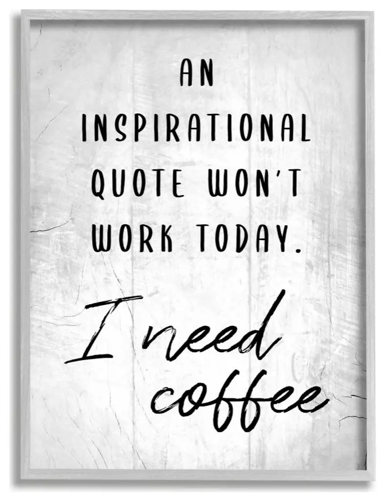 Hilarious I Need Coffee Inspirational Joke Black White,1pc, Each 16 X 20