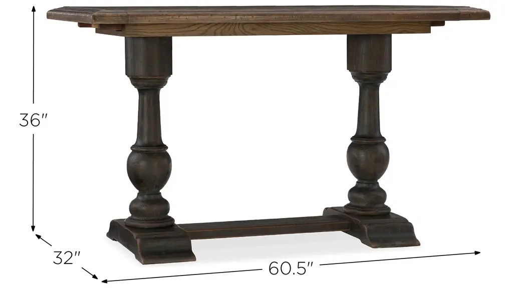 Inspired by tables in country inns across Texas where travelers would gather during frontier days, the adjustable-height Hill Country Rectangular Dining Table can be used for many purposes. At the 30-inch height, use it as a regular dining table, or even a desk. At the 36-inch height, use it as a counter-height table or tall desk. Table extends to 84 inches with both leaves in place to seat 8 guests. Without leaves, seats 6.