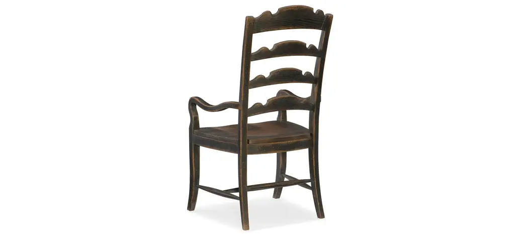 Pull up this Hill Country Twin Sisters ladderback arm chair and listen to stories of the Old West, while you break bread with family and friends. This character-filled ladderback design is in an aged black finish with light dusty-wax hang up for a seasoned appearance. Wood seat.