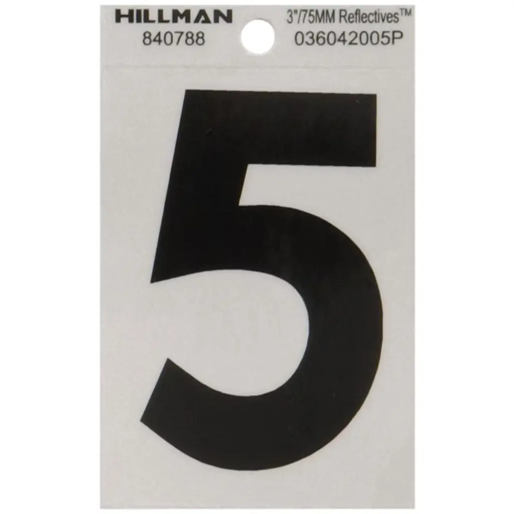 Hillman 2 In. Reflective Black Vinyl Self-adhesive Number 5 1 Pc (Case Of 6)