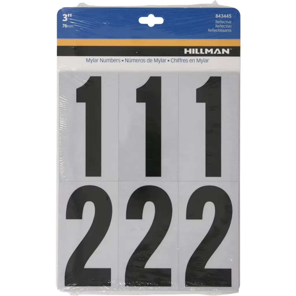 Simple and classic, this Hillman 2 in. Reflective Black Vinyl Self-Adhesive Number Set 0-9 35-piece is perfect for use on a mailbox or your home. The sturdy construction and weather‑resistant material is easy to apply on mailboxes, address plaques, doors, or walls, and enhances curb appeal and ensures clear identification day or night. Ideal for homes or businesses.
