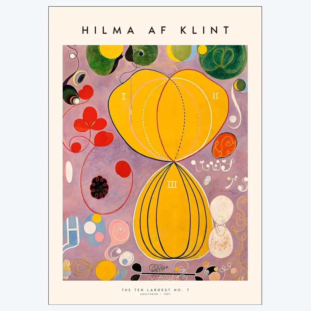 Elevate your interiors with Hilma af Klint’s "The Ten Largest No. 6 – 1907." Featuring mesmerizing shapes and masterful color pairings, this stunning piece showcases the profound creativity of one of the world’s first abstract artists. A striking addition to modern and contemporary spaces. Unframed. Available in three sizes.
