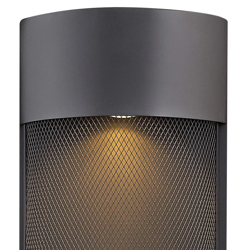 One Light Wall Mount from Aria collection in Black finish. Number of Bulbs 1. Max Wattage 50.00. No bulbs included. Aria is a contemporary style that effortlessly complements the facade of any exterior. Its modern shape in durable aluminum is enhanced by a stainless-steel mesh shade. Aria`s high style and low maintenance comes standard Dark Sky compliant. No UL Availability at this time.