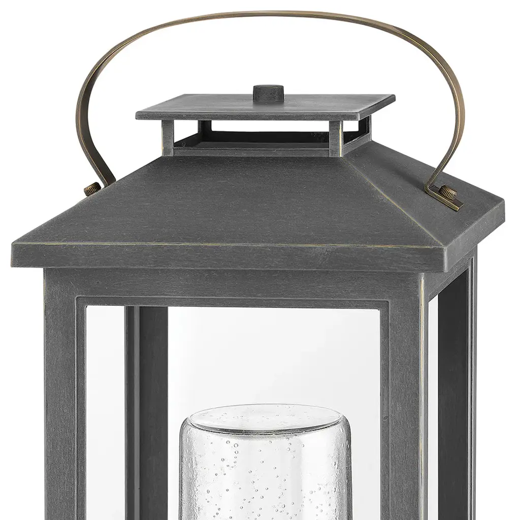 One Light Pier Mount from Atwater collection in Ash Bronze finish. Number of Bulbs 1. Max Wattage 100.00. No bulbs included. Classic and elegant, Atwater offers beauty and endurance. Constructed from a composite material and treated with an anti-fading agent, the updated coastal design incorporates elegant brass accents, handle, and an inner glass that creates a faux candle effect. The Ash Bronze Resilience finish is resistant to rust and corrosion with a 5 year warranty. No UL Availability at this time.