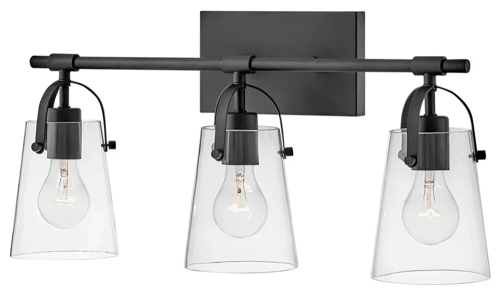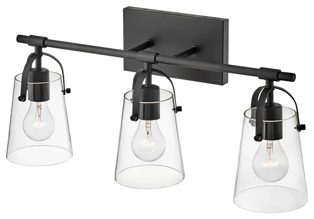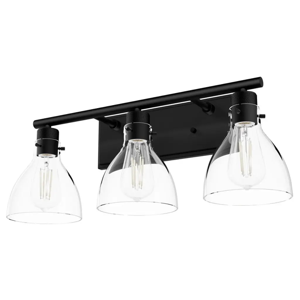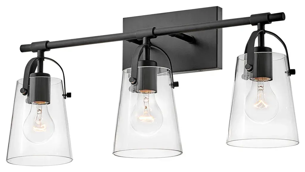 Clean and airy, Foster breathes composed simplicity into any bath space. Softly tapered clear glass, suspended from an arched handle, adds pizzazz to its transitional shape.• Bulb(s) Included: No• Fixture can be mounted either up or down • Suitable for use in damp locations as defined by NEC and CEC. Meets United States UL Underwriters Laboratories & CSA Canadian Standards Association Product Safety Standards. • Merging the best of traditional and modern elements with a sophisticated and streamlined look • Mounting hardware is hidden on the back plate to ensure a clean silhouette• • • • • • • • • • •